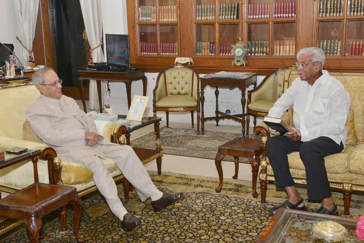| Caption: | The President of India, Shri Pranab Mukherjee meeting with Dr. Ashok Ganguly, MP (RS), at Rashtrapati Bhavan, in New Delhi on September 21, 2015. |