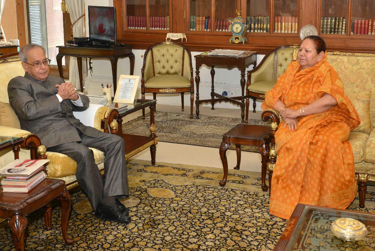| Caption: | The President of India, Shri Pranab Mukherjee meeting with the former Governor of Himachal Pradesh, Smt. Urmila Singh, at Rashtrapati Bhavan, in New Delhi on September 17, 2015. |