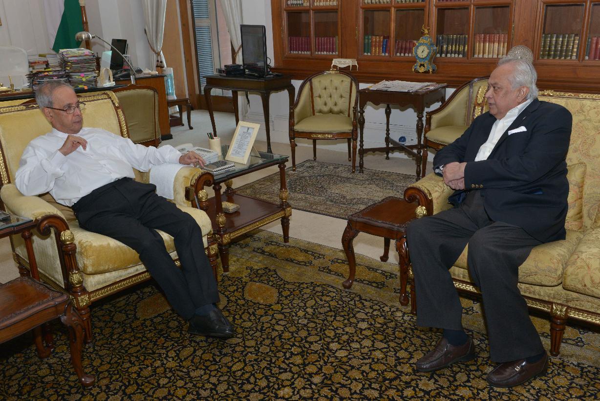 | Caption: | The President of India, Shri Pranab Mukherjee meeting with Dr. Bikash Sinha, Homi Bhabha Professor, Department of Atomic Energy & former Director, Saha Institute of Nuclear Physics & Variable Energy Cyclotron Centre, Kolkata, at Rashtrapati Bhavan, in New Delhi on September 25, 2015. |