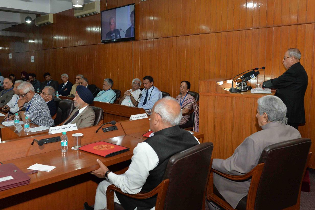 | Caption: | The President of India, Shri Pranab Mukherjee addressing the International Conference on Project/Programme "Cooperative Development Peace and Security in South & Central Asia", at Chandigarh on September 30, 2015. |