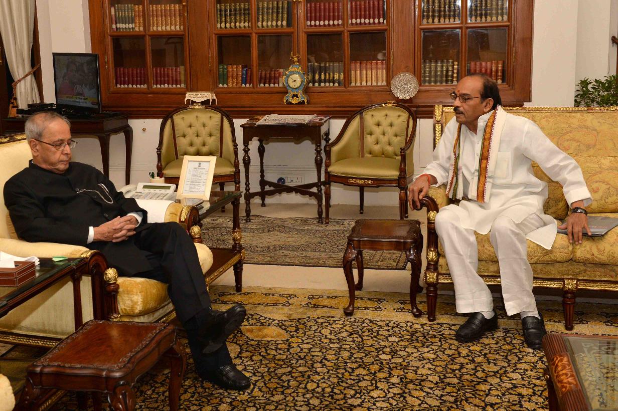| Caption: | The President of India, Shri Pranab Mukherjee meeting with Shri D. Kalidas, Member, AICC, at Rashtrapati Bhavan, in New Delhi on October 05, 2015. |