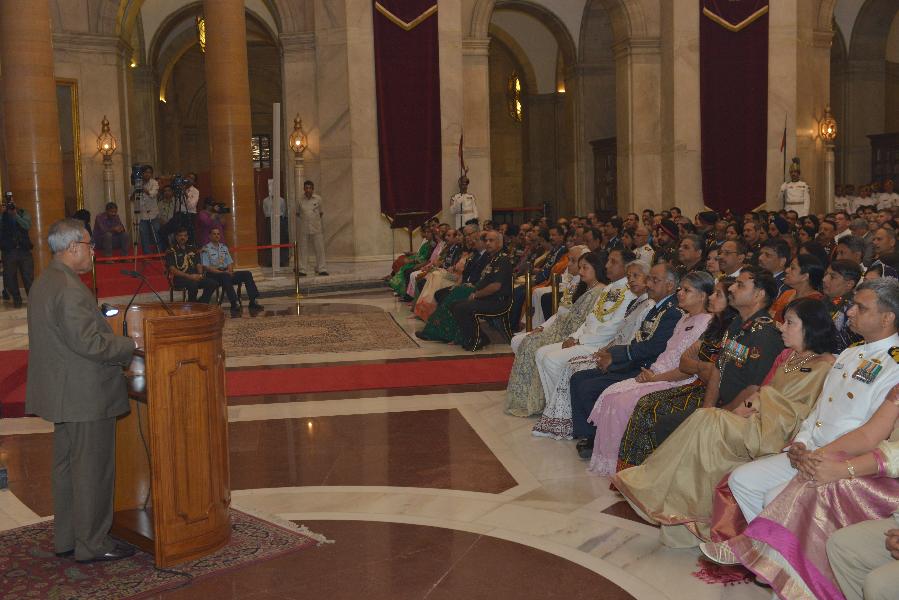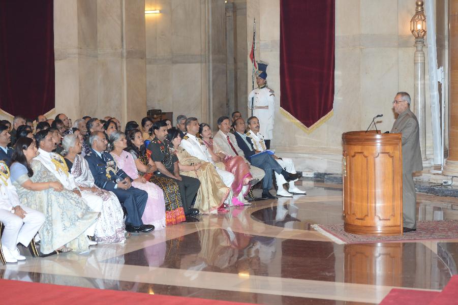 | Caption: | The President of India, Shri Pranab Mukherjee interacting with the Members of 53rd NDC Course and Faculty of National Defence College along with spouses at Durbar Hall of Rashtrapati Bhavan in New Delhi on Nov 04, 2013 |