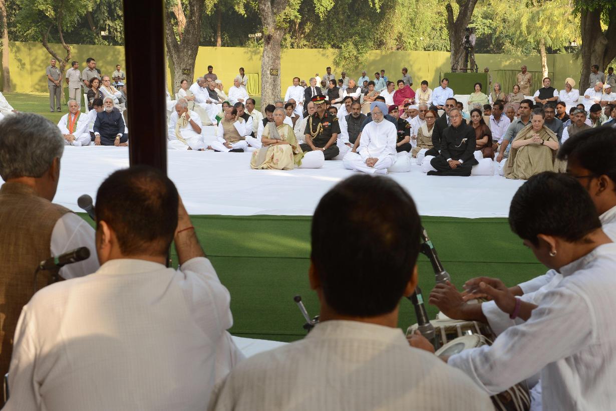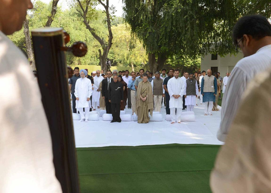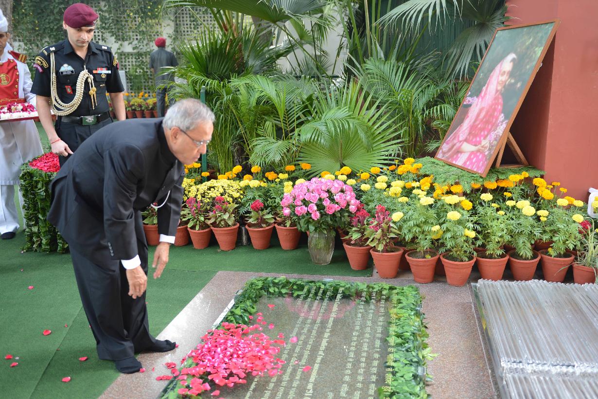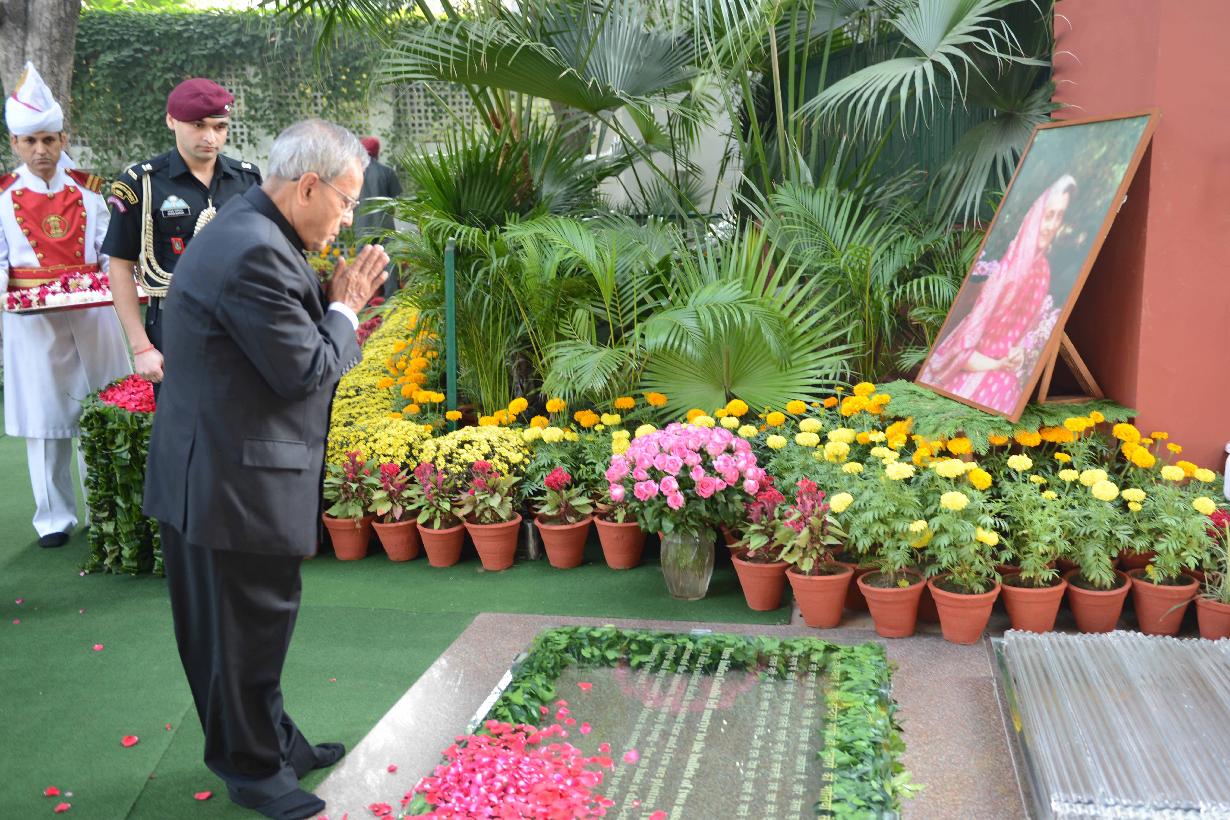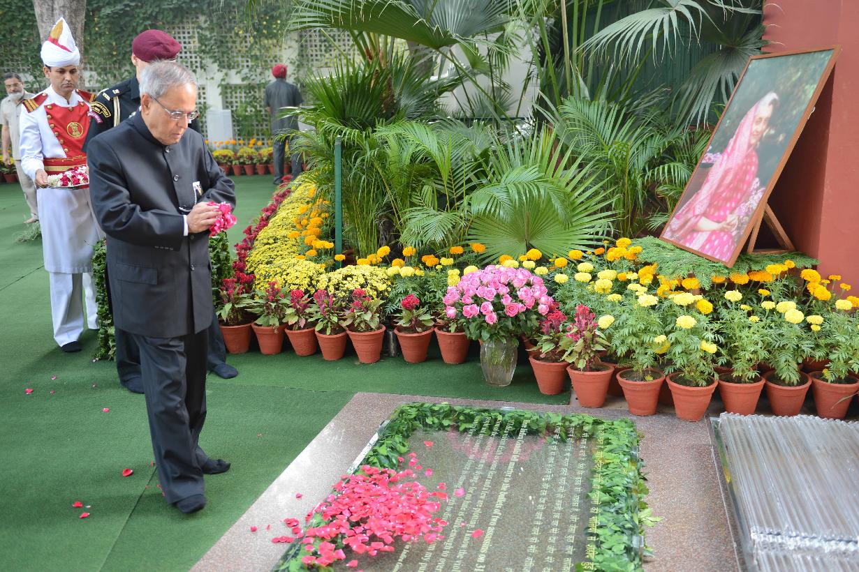 | Caption: | The President of India, Shri Pranab Mukherjee paying his floral tribute to the Former Prime Minister of India, Late Smt Indira Gandhi on her 29th Death Anniversary at Safdarjung Road in New Delhi on Oct 31, 2013 |
