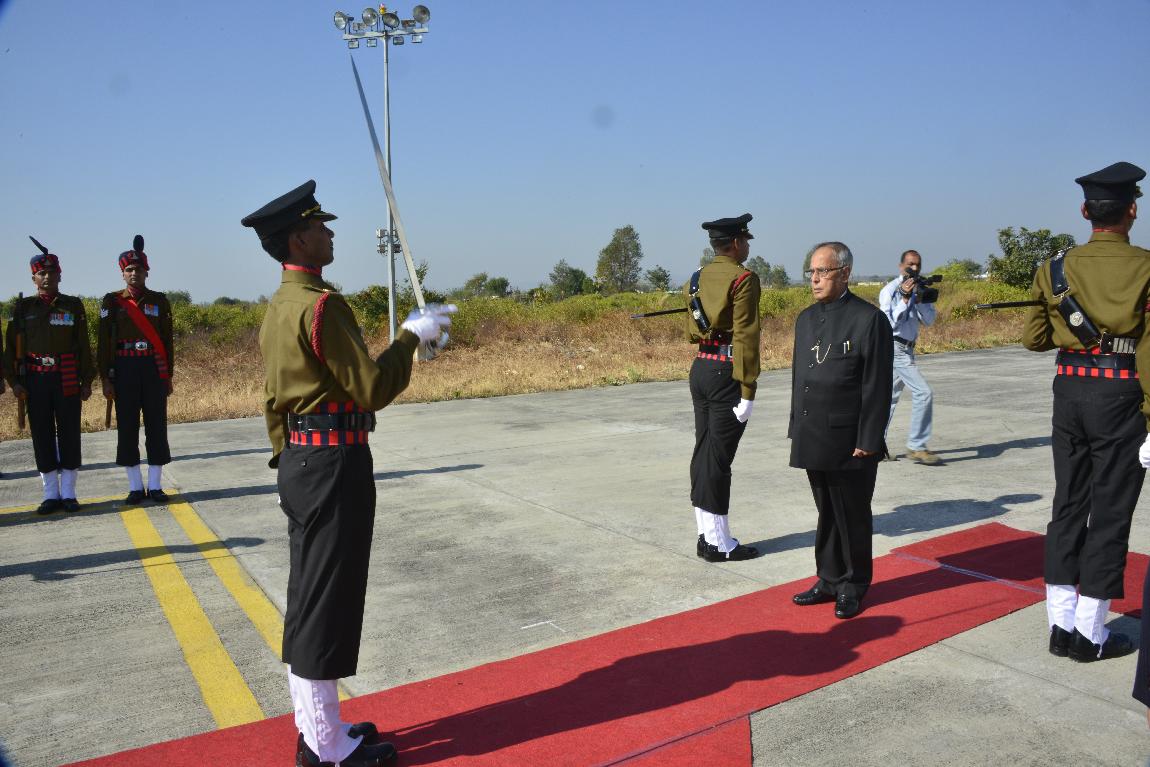 | Caption: | The President of India, Shri Pranab Mukherjee Inspecting Guard of Honour at Uttarakhand on Dec 09, 2012 |