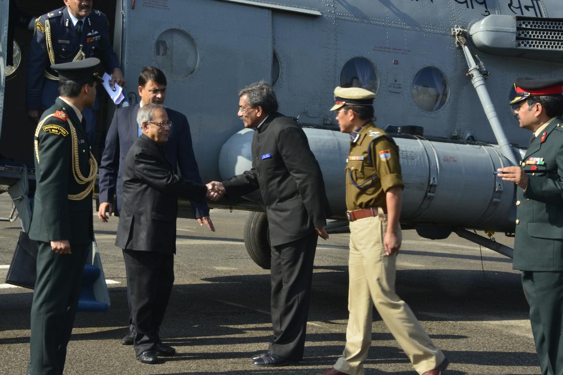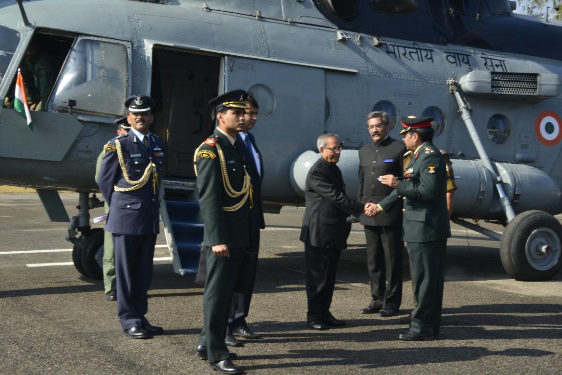 The President of India, Shri Pranab Mukherjee Arriving at Raiwala Army Helipad on Dec 09, 2012