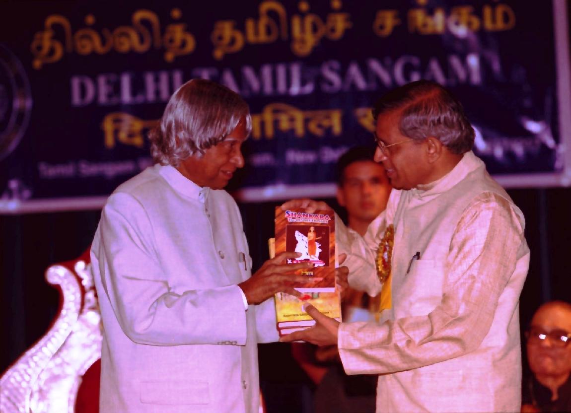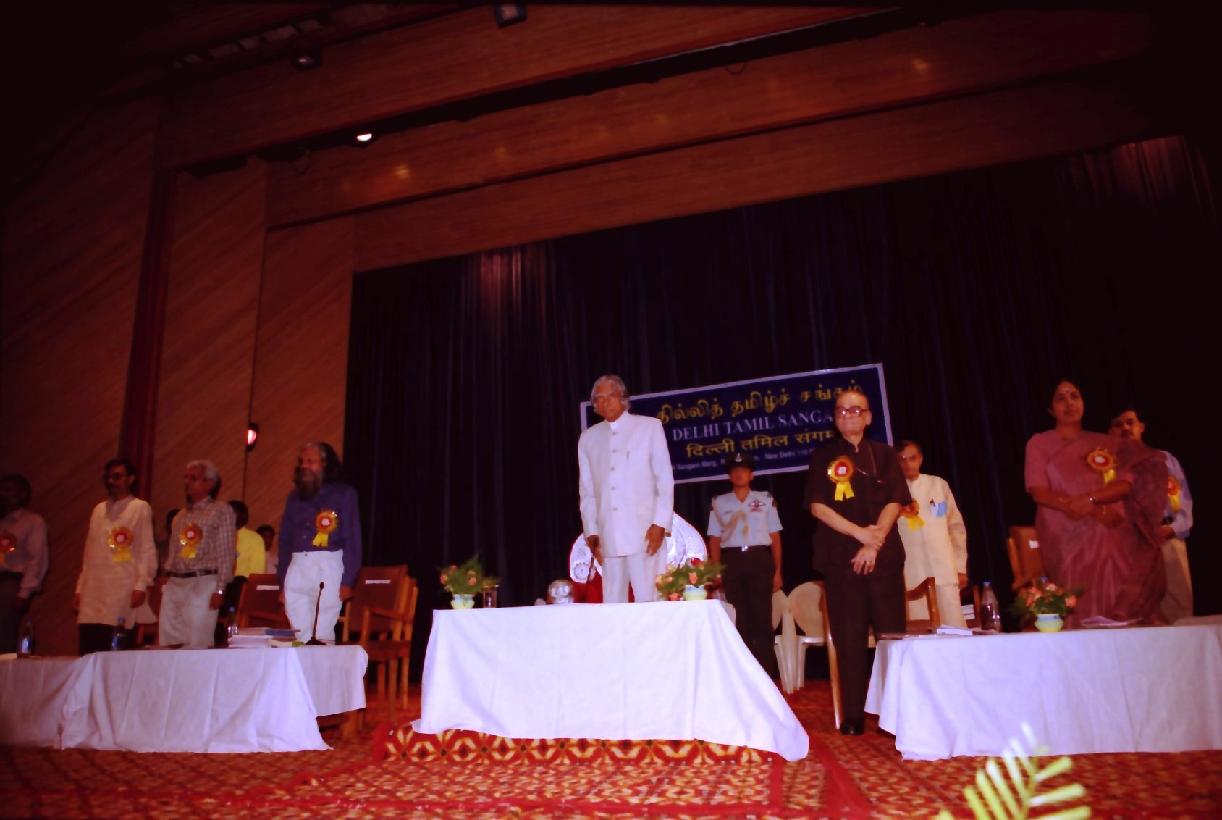 | Caption: | The President of India, Dr A P J Abdul Kalam at the Bharathi Memorial Kaviarangam at Delhi Tamil Sangam Sectors 5 Ramakrishna Puram in New Delhi on Sep 11, 2003 |