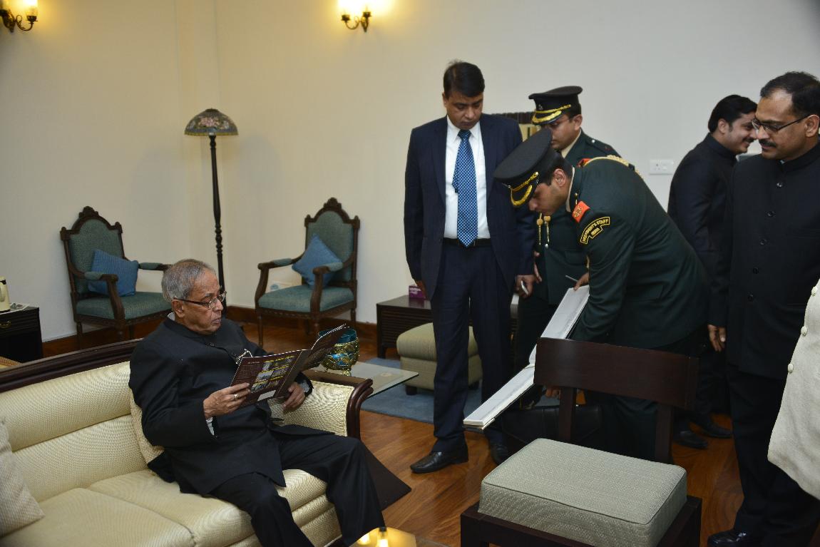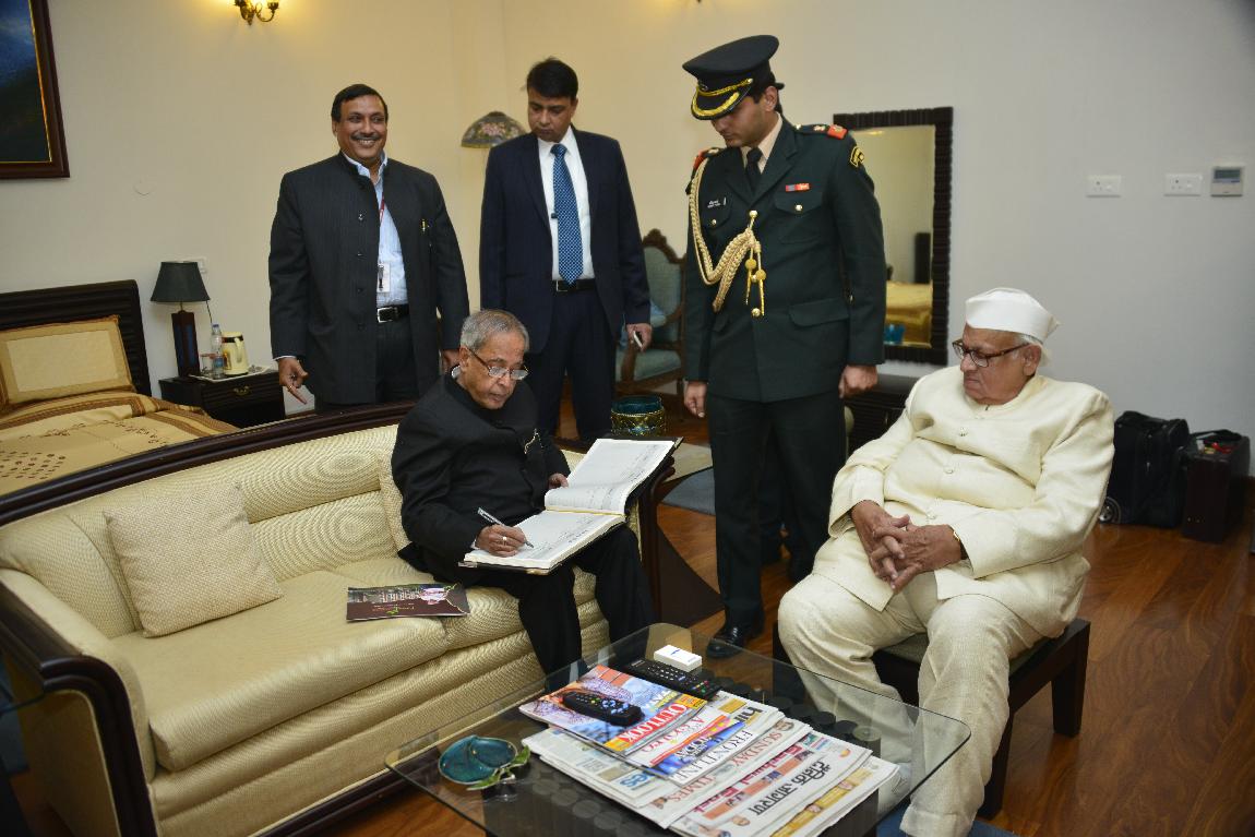 The President of India, Shri Pranab Mukherjee Signing on Visitor Book at Raj Bhavan on Dec 09, 2012