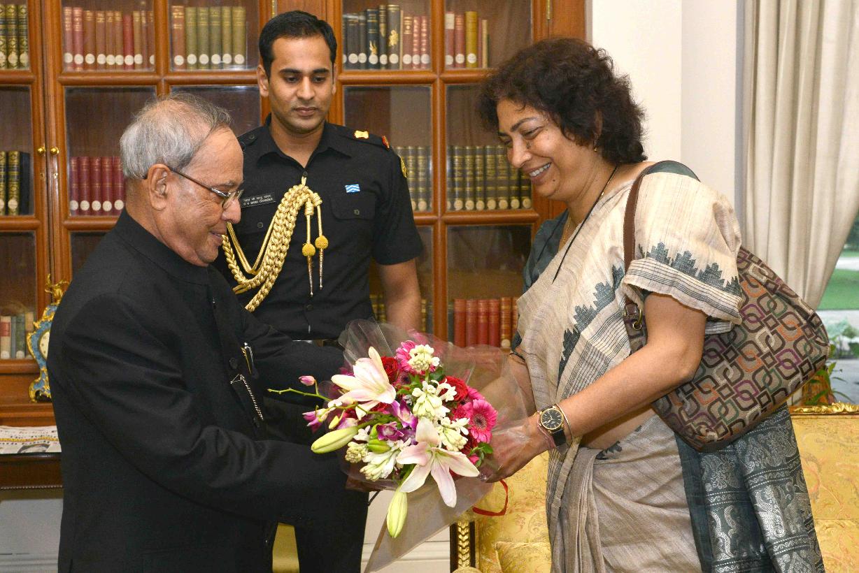 | Caption: | The President of India, Shri Pranab Mukherjee meeting with Pravrajika Prabhaprana, Secretary and Smt. Archana Datta, Advisor, Ramakrishna Sarada Mission, at Rashtrapati Bhavan, in New Delhi on July 30, 2015. |