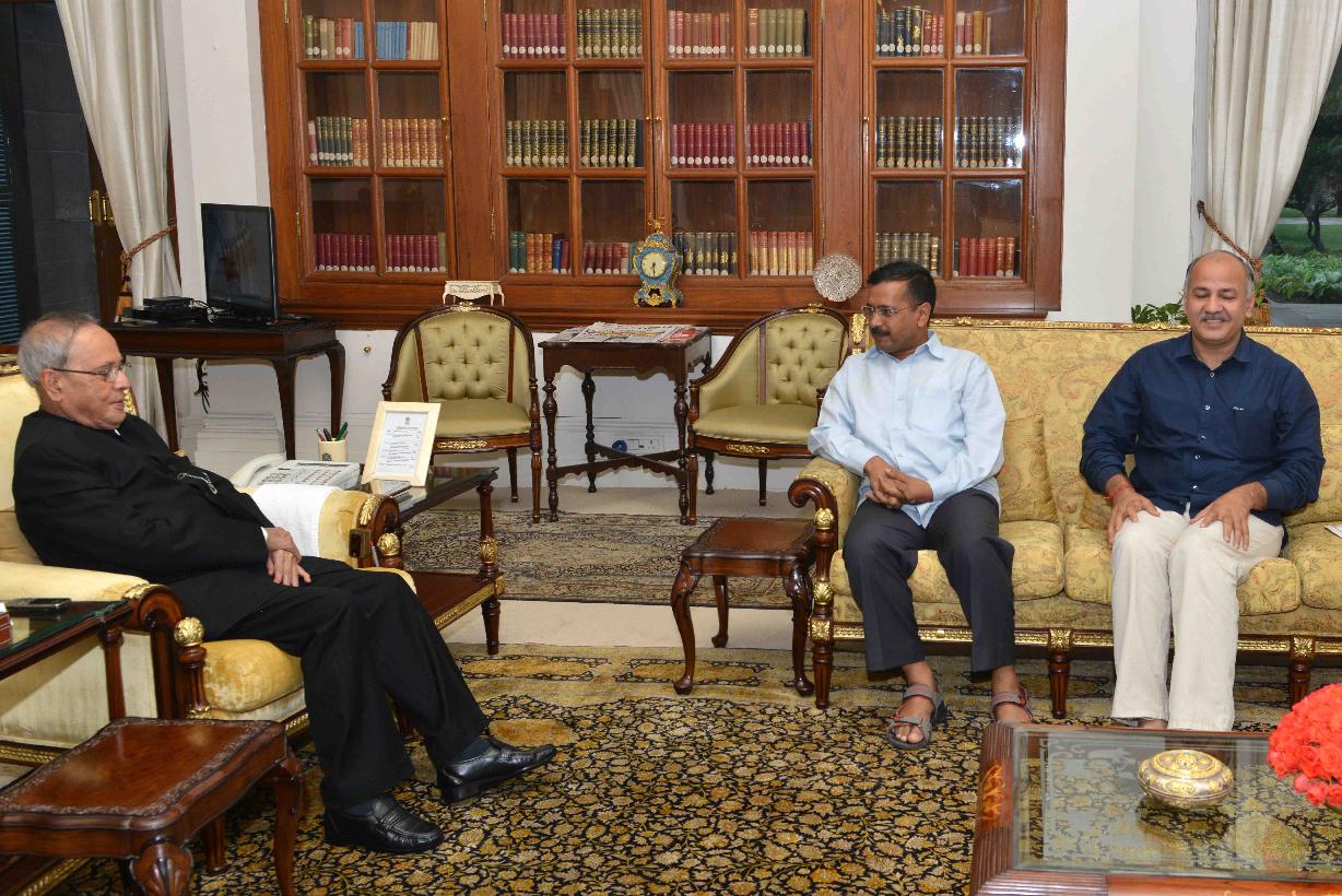 | Caption: | The Chief Minister of Delhi, Shri Arvind Kejriwal and the Deputy Chief Minister of Delhi, Shri Manish Sisodia calling on the President of India, Shri Pranab Mukherjee, at Rashtrapati Bhavan, in New Delhi on July 30, 2015. |