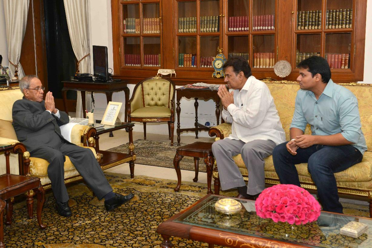 | Caption: | The President of India, Shri Pranab Mukherjee meeting with Shri KK Sharma, former Minister, Uttar Pradesh & Secretary, AICC alongwith his son, at Rashtrapati Bhavan, in New Delhi on August 21, 2015. |