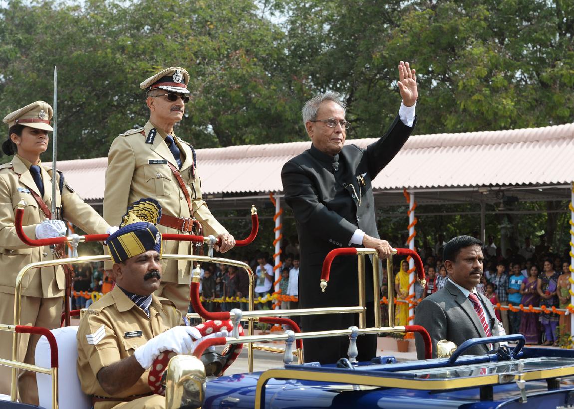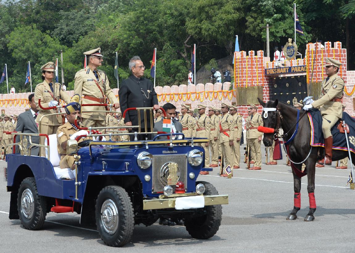 | Caption: | The President of India, Shri Pranab Mukherjee during Dikshant Parade of the Indian Police Service Probationers of 2012 Batch at Sardar Vallabhbhai Patel National Police Academy at Hyderabad in Andhra Pradesh on Nov 05, 2013 |