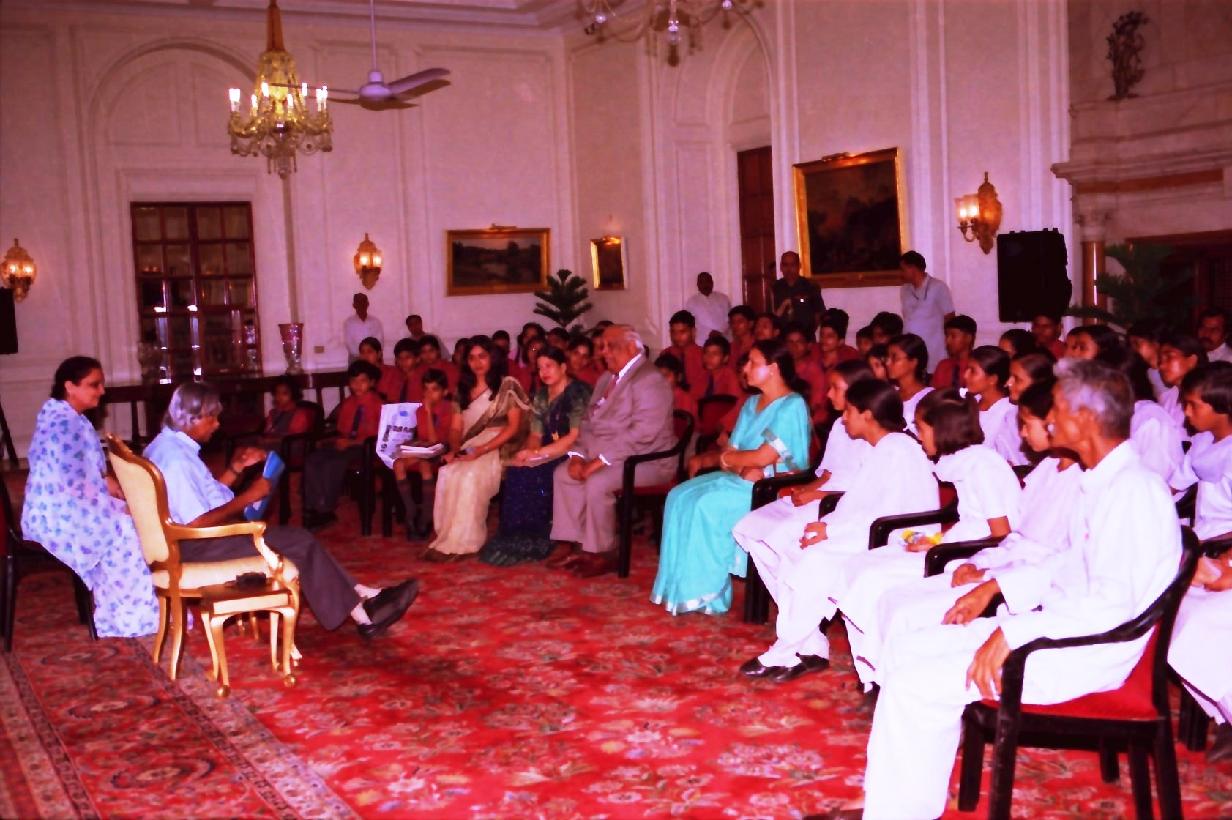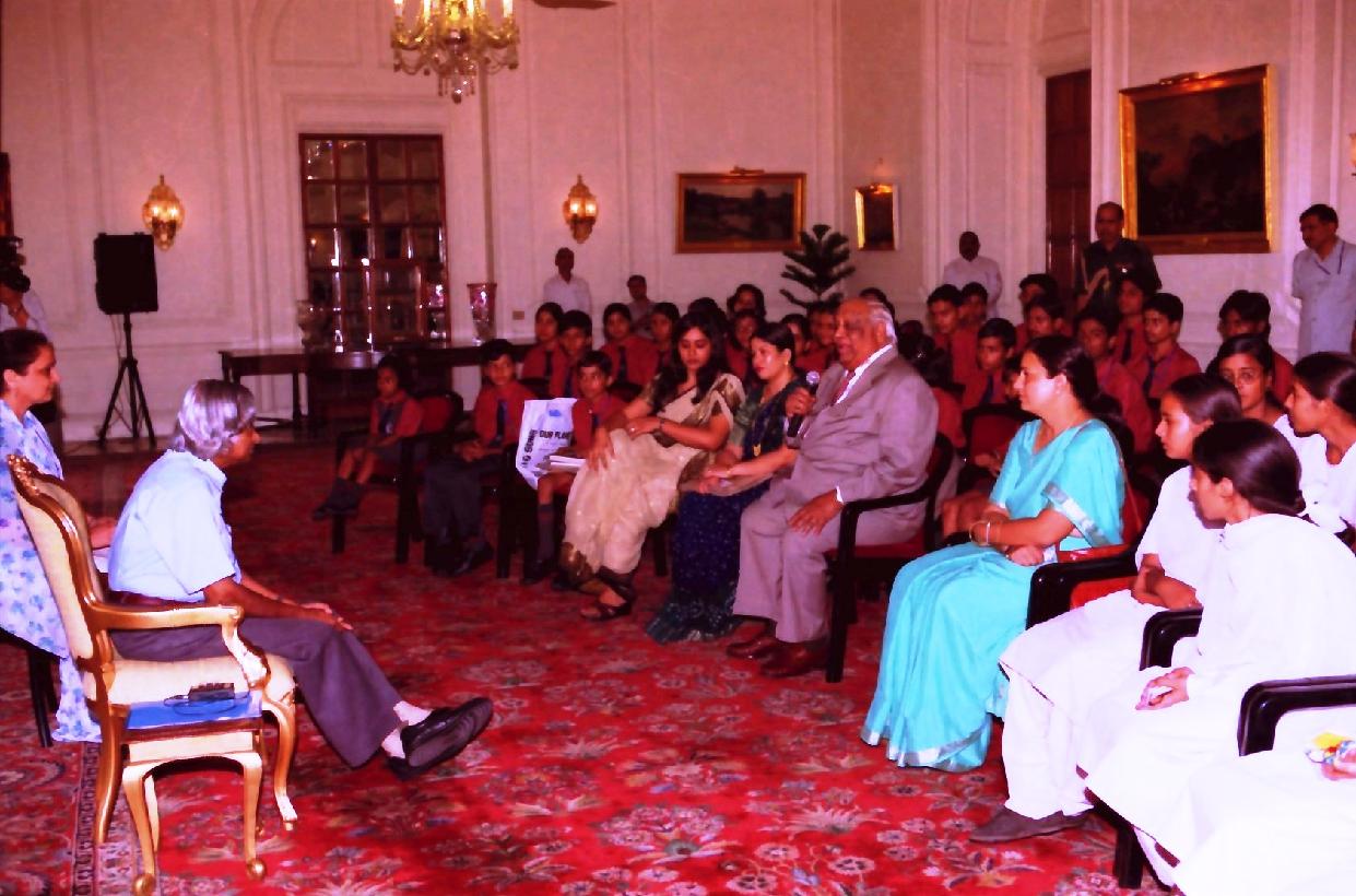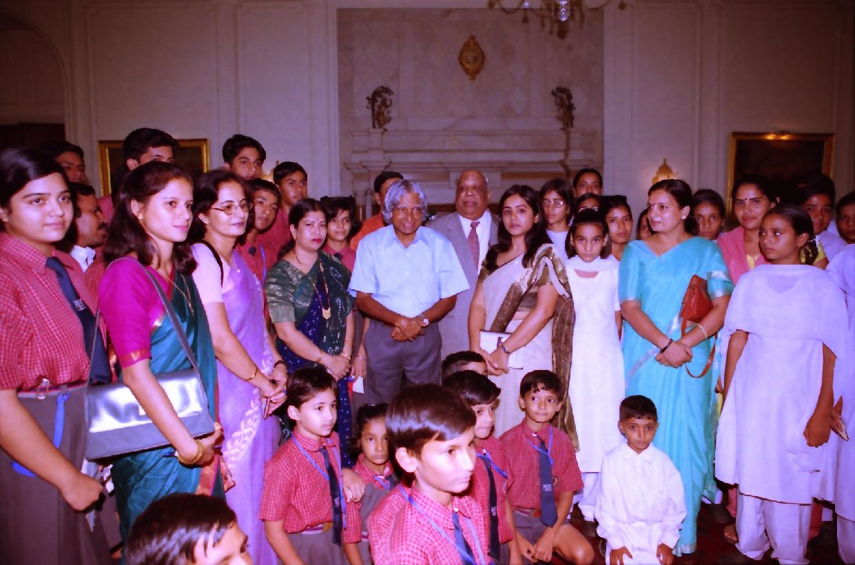 | Caption: | The Students from Triveni Devi Hada Govt Girls Senior Secondary School Bhiwani and Meenakshi Public School Gurgaon run by the Meenakshi Foundation calling on the President of India, Dr A P J Abdul Kalam at the Yellow Drawing Room of Rashtrapati Bhavan in New Delhi on Sep 19, 2003 |