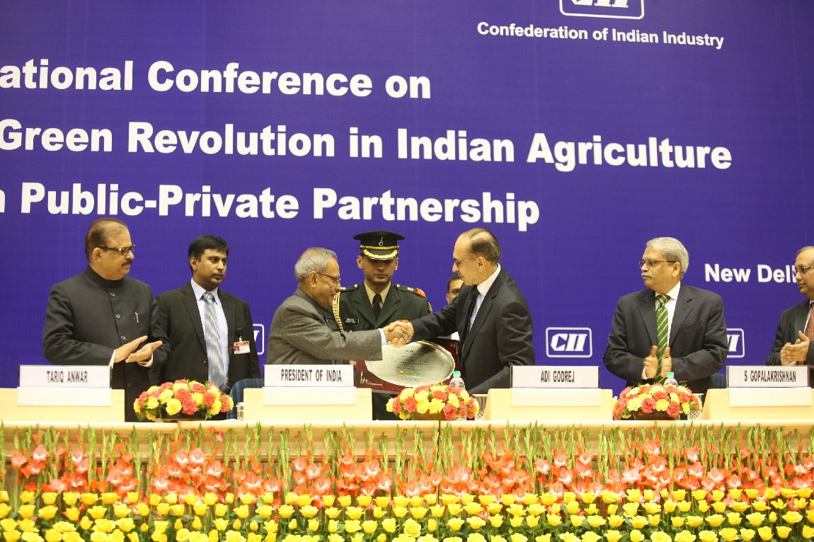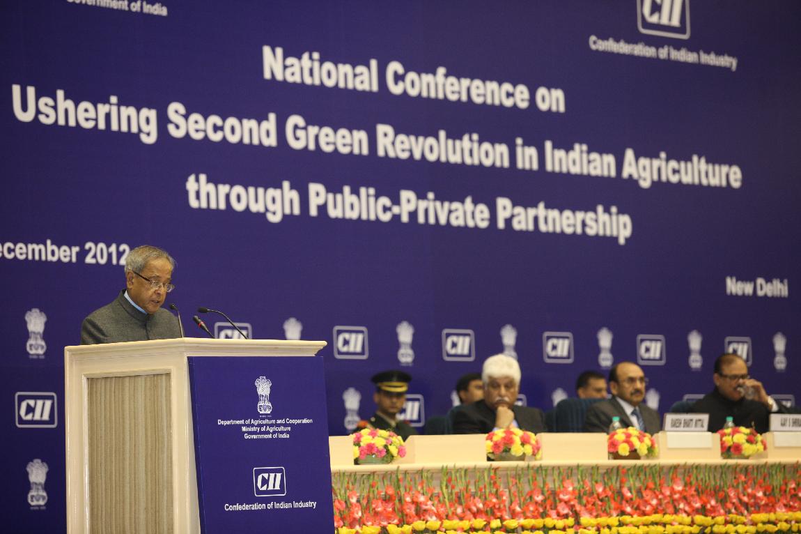 | Caption: | The President of India, Shri Pranab Mukherjee Attending National Conference on Ushering Second Green Revolution in Indian Agriculture at Vigyan Bhavan on Dec 11, 2012 |