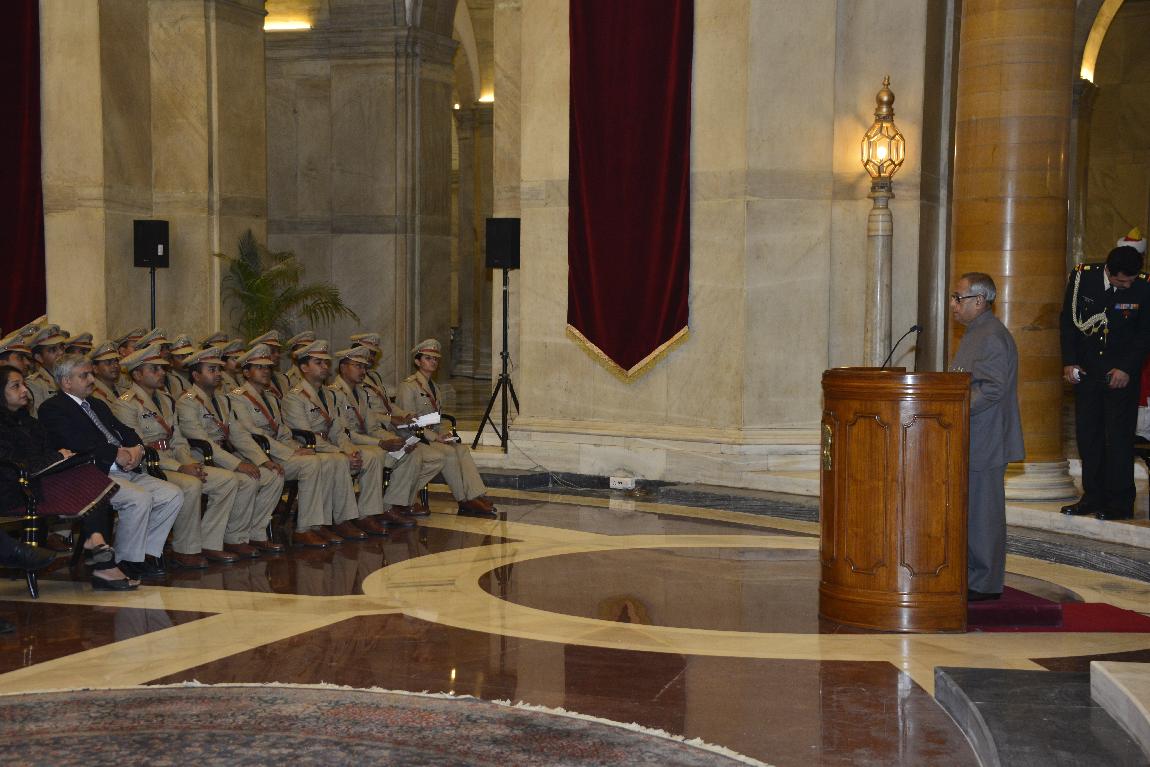 | Caption: | The President of India, Shri Pranab Mukherjee Attending IPS Probationers 64th RR (2011) Batch from Sardar Vallabhbhai Patel National Police Academy on Dec 13, 2012 |