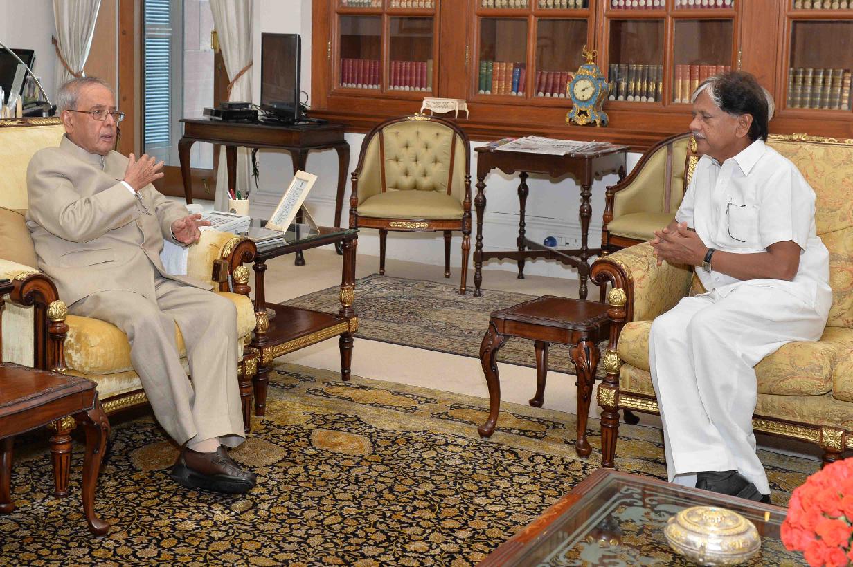 | Caption: | The President of India, Shri Pranab Mukherjee meeting with the former Union Minister, Shri Anil Shastri, at Rashtrapati Bhavan, in New Delhi on August 27, 2015. |