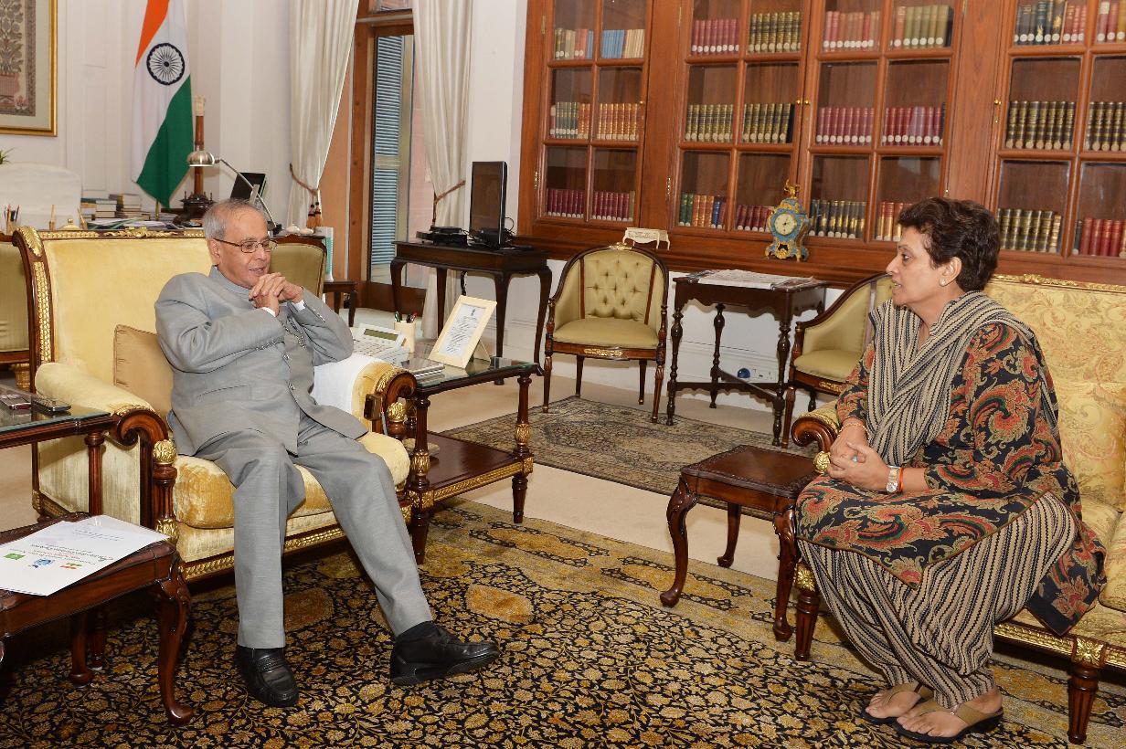 | Caption: | The President of India, Shri Pranab Mukherjee meeting with Ms. Praveen Mahajan, former Chairman, Central Board of Excise & Customs (CBEC), at Rashtrapati Bhavan, in New Delhi on September 08, 2015. |