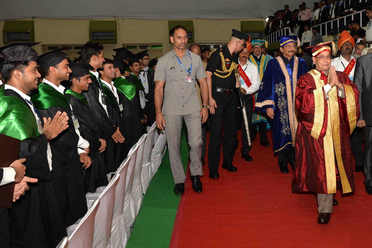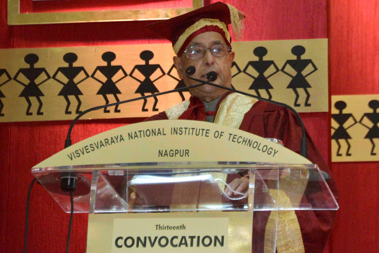 | Caption: | The President of India, Shri Pranab Mukherjee attending the 13th convocation of Visvesvaraya National Institute of Technology Nagpur, at Nagpur, in Maharashtra on September 15, 2015. The Governor of Maharashtra, Shri C. Vidyasagar Rao, the Union Minister for Road Transport & Highways and Shipping, Shri Nitin Gadkari and the Chief Minister of Maharashtra, Shri Devendra Fadnavis are also seen. |