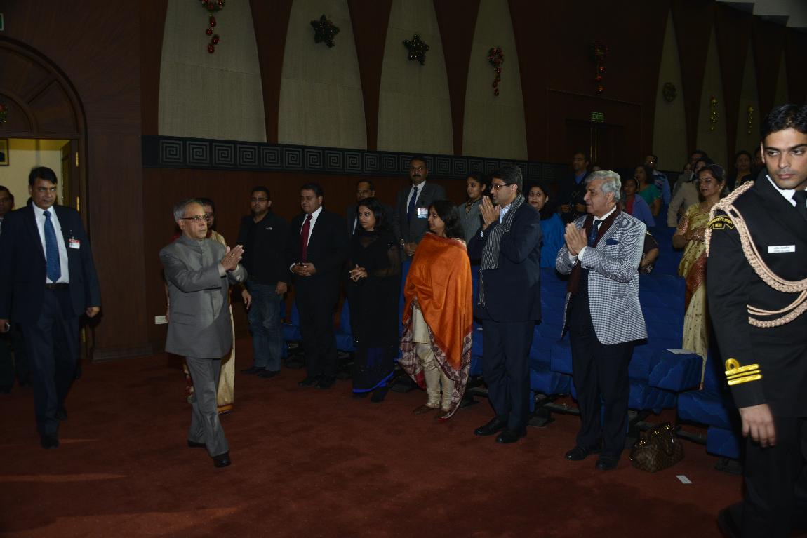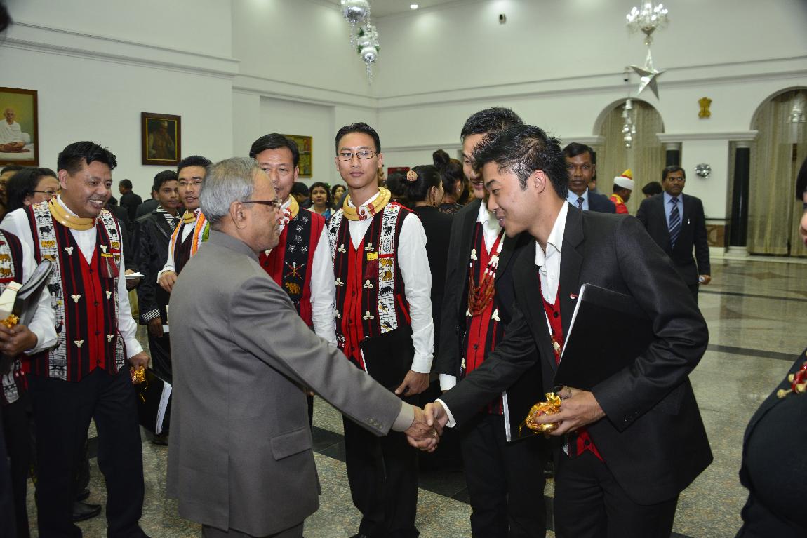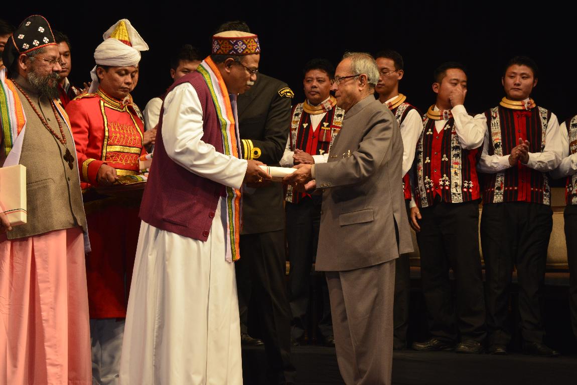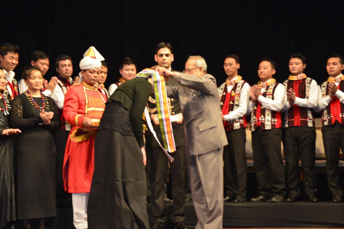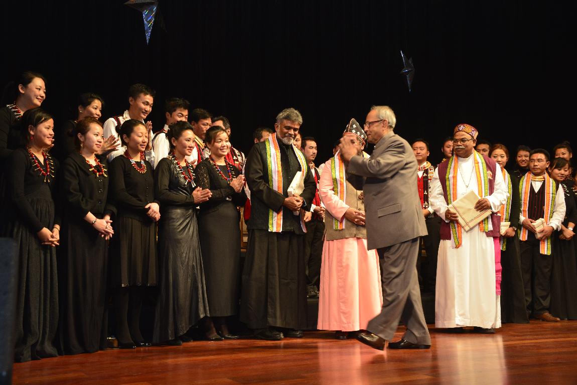 | Caption: | The President of India, Shri Pranab Mukherjee Attending The Performance under the Indra Dhanush cultural banner concert The 'Ao Naga Choir' at Rashtrapati Bhavan Auditorium on Dec 15, 2012 |