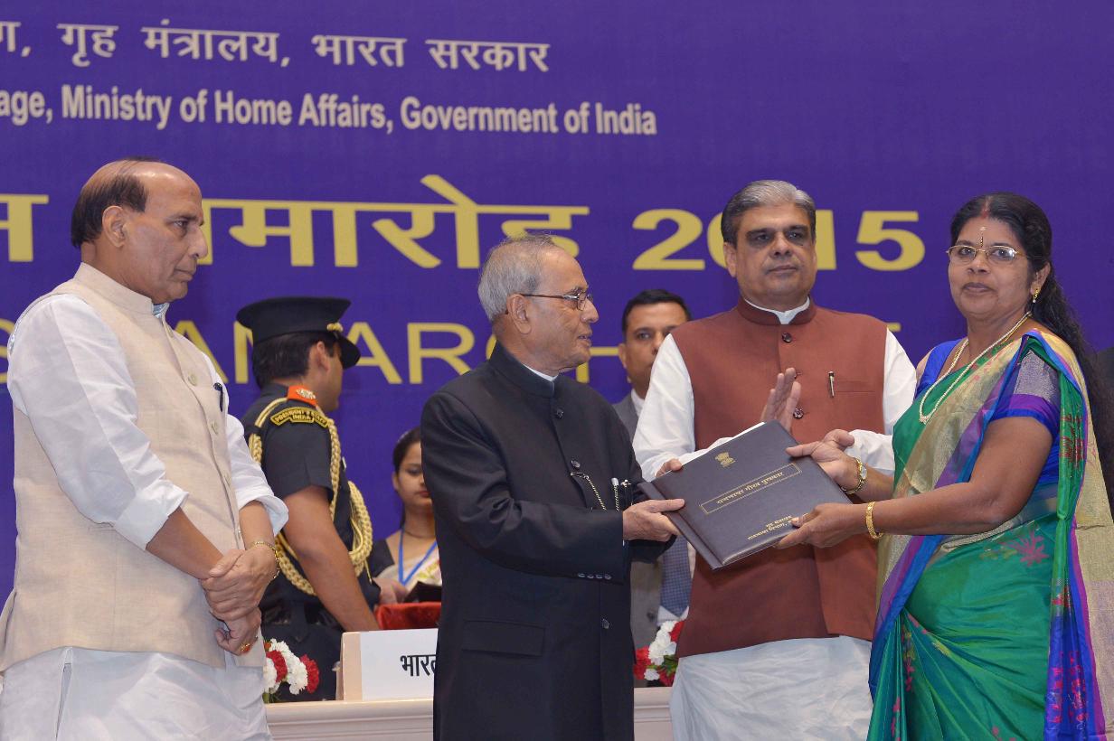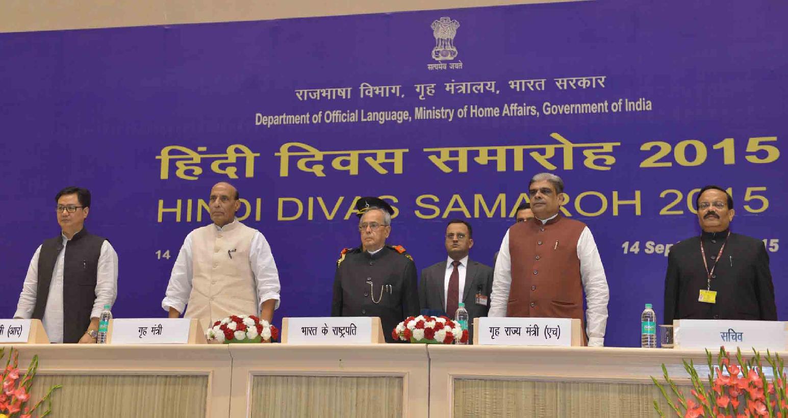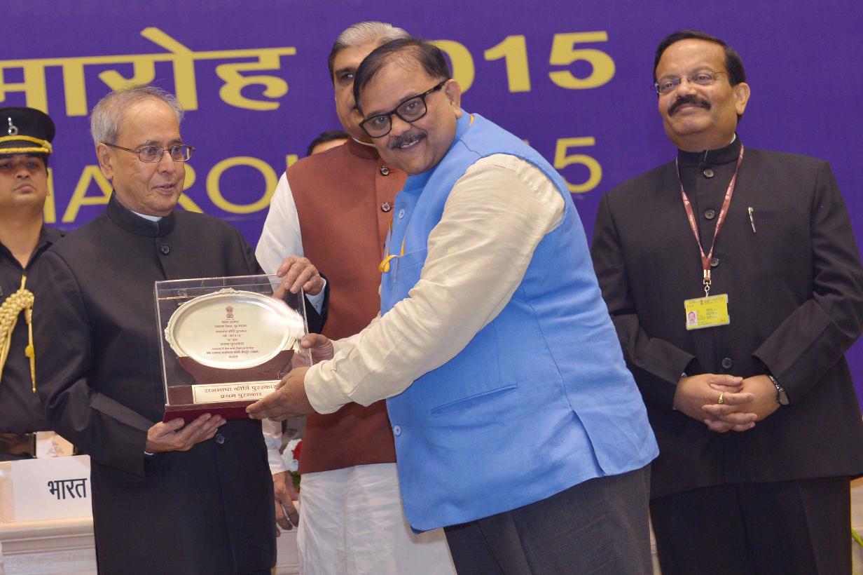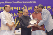 | Caption: | The President of India, Shri Pranab Mukherjee presenting Rajbhasha awards, at Hindi Divas Samaroh, in New Delhi on September 14, 2015. |