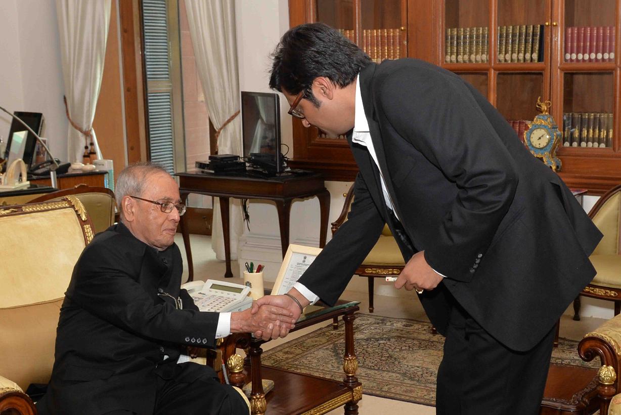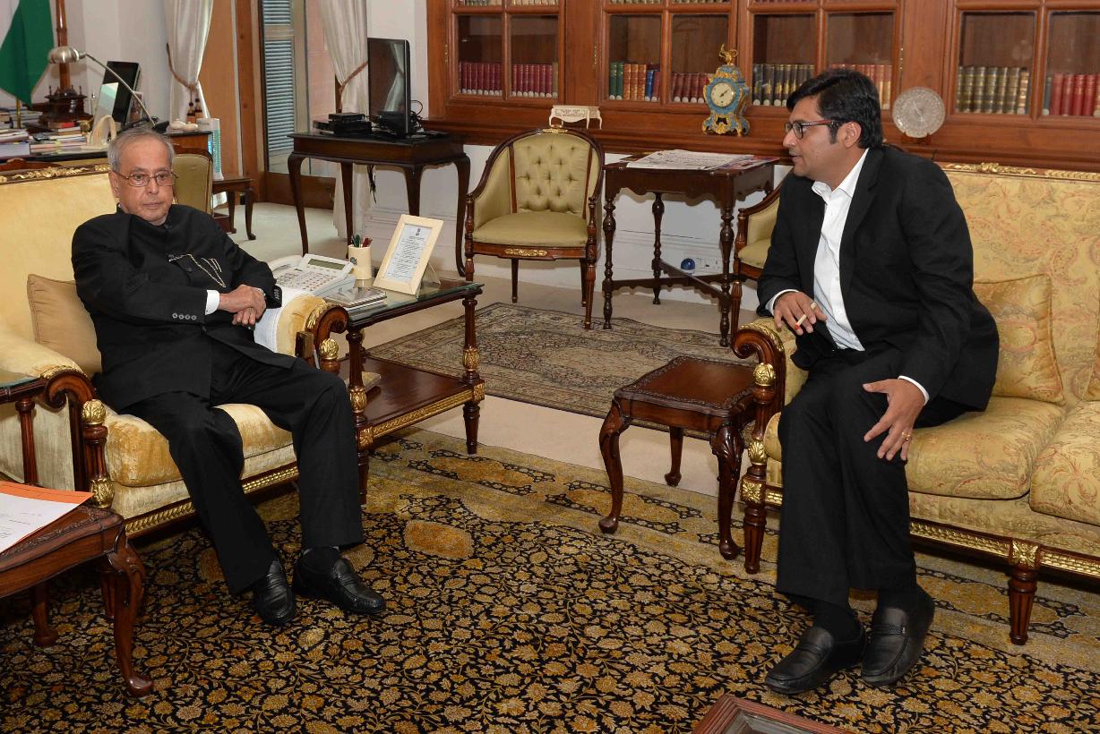 | Caption: | The President of India, Shri Pranab Mukherjee meeting with the Editor-in-Chief, Times Television Network, Shri Arnab Goswami, at Rashtrapati Bhavan, in New Delhi on October 05, 2015. |