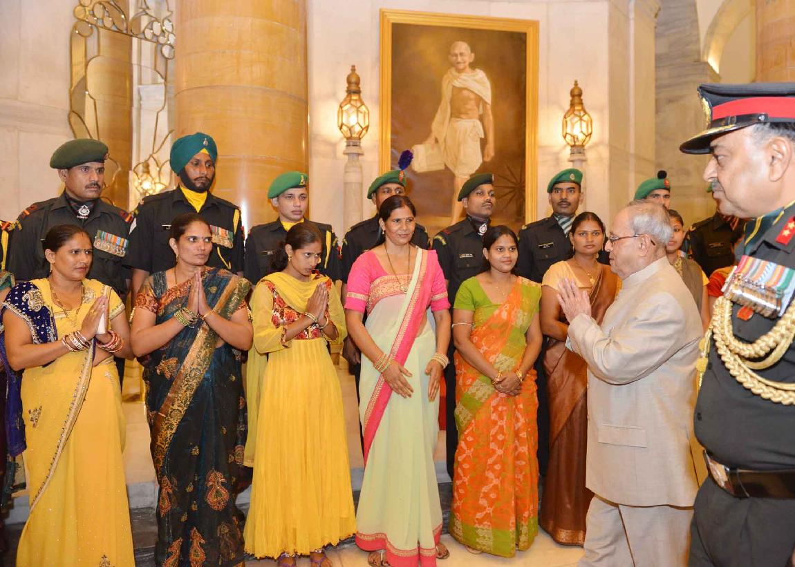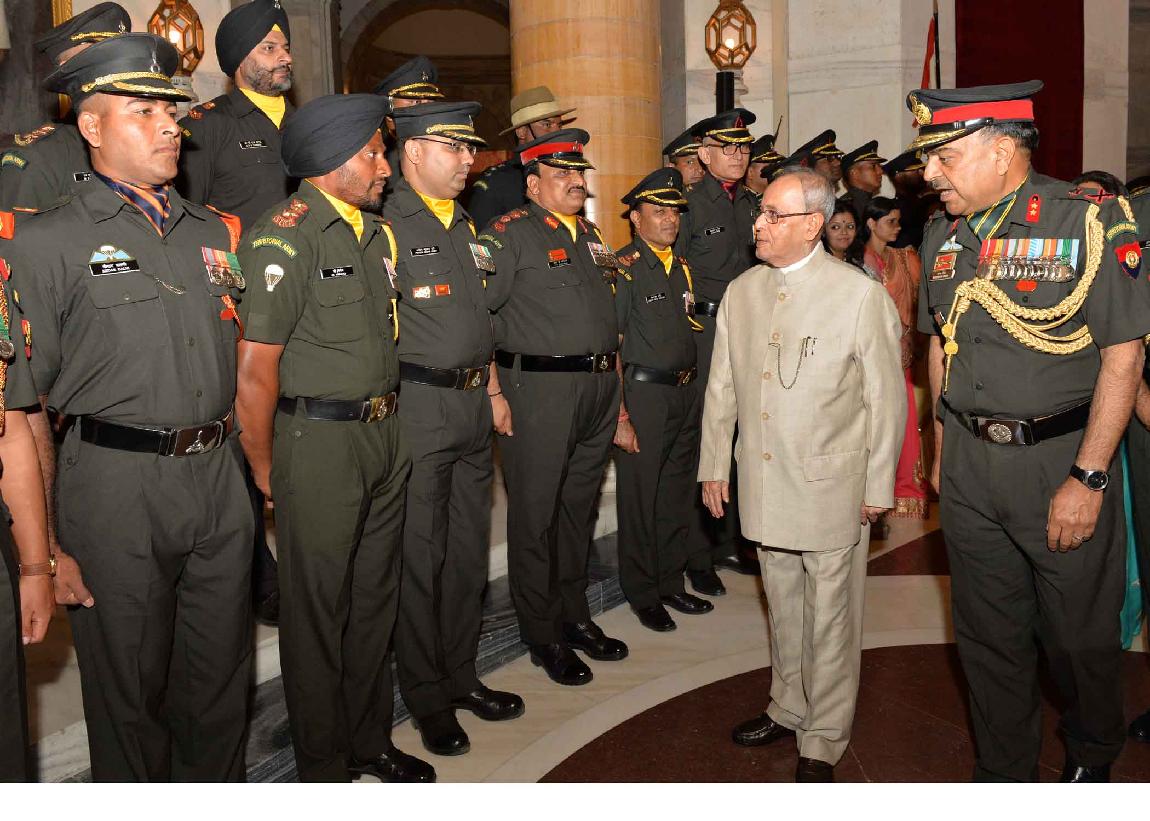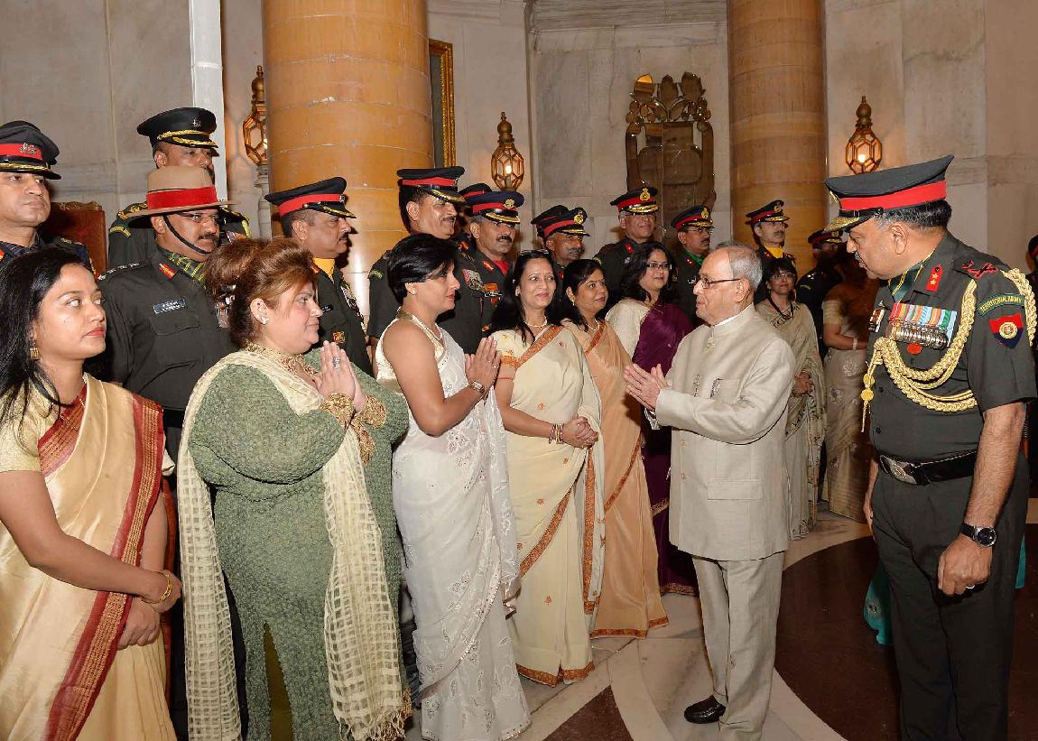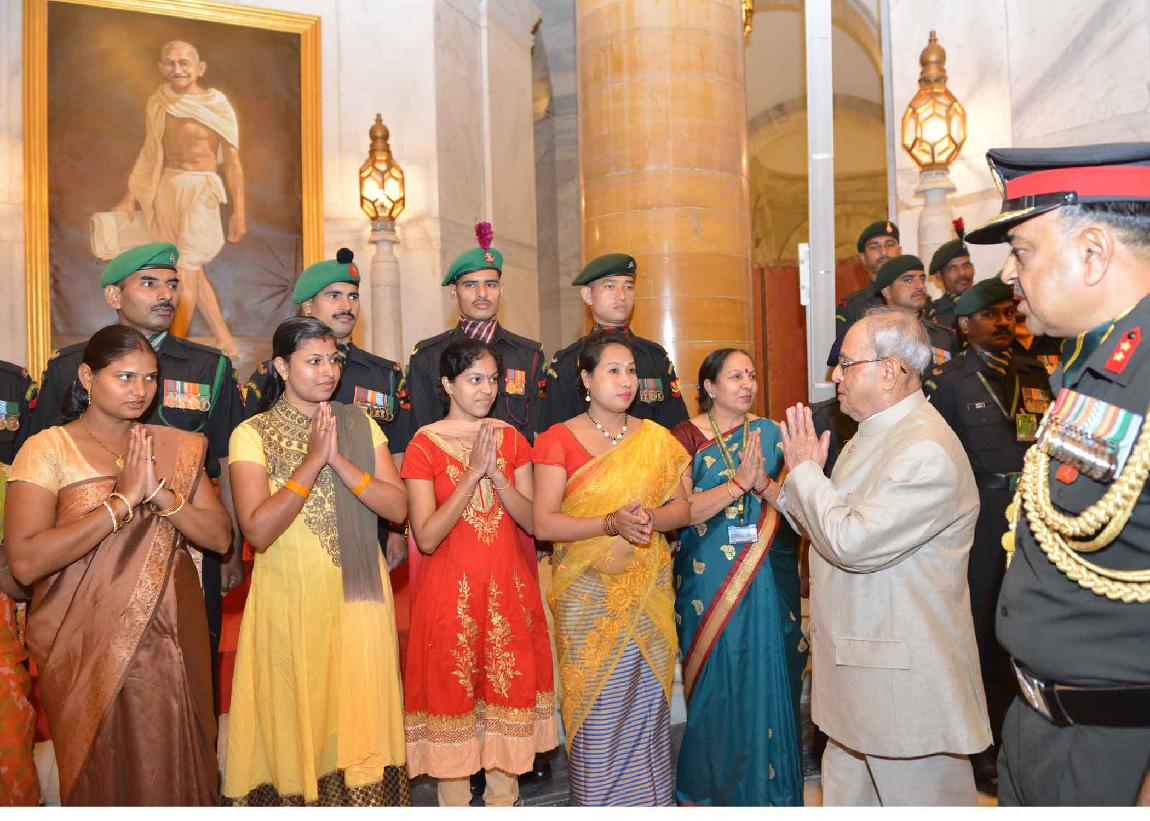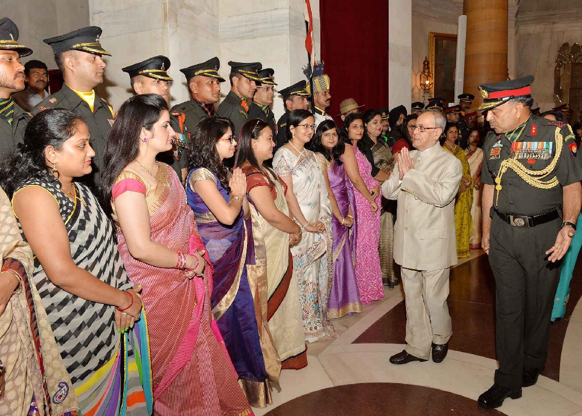 | Caption: | The President of India, Shri Pranab Mukherjee meeting with the Territorial Army Officers, JCO and other Ranks along with their spouses on the occasion of Raising Day of Territorial Army, at Rashtrapati Bhavan on October 06, 2015. |