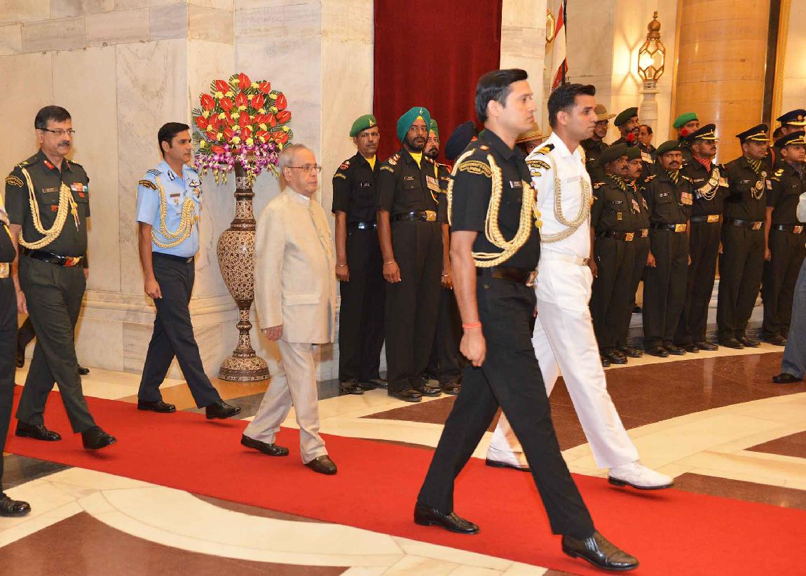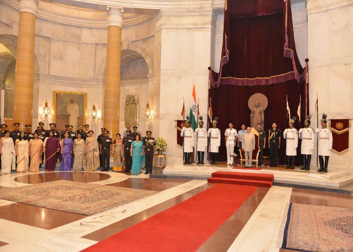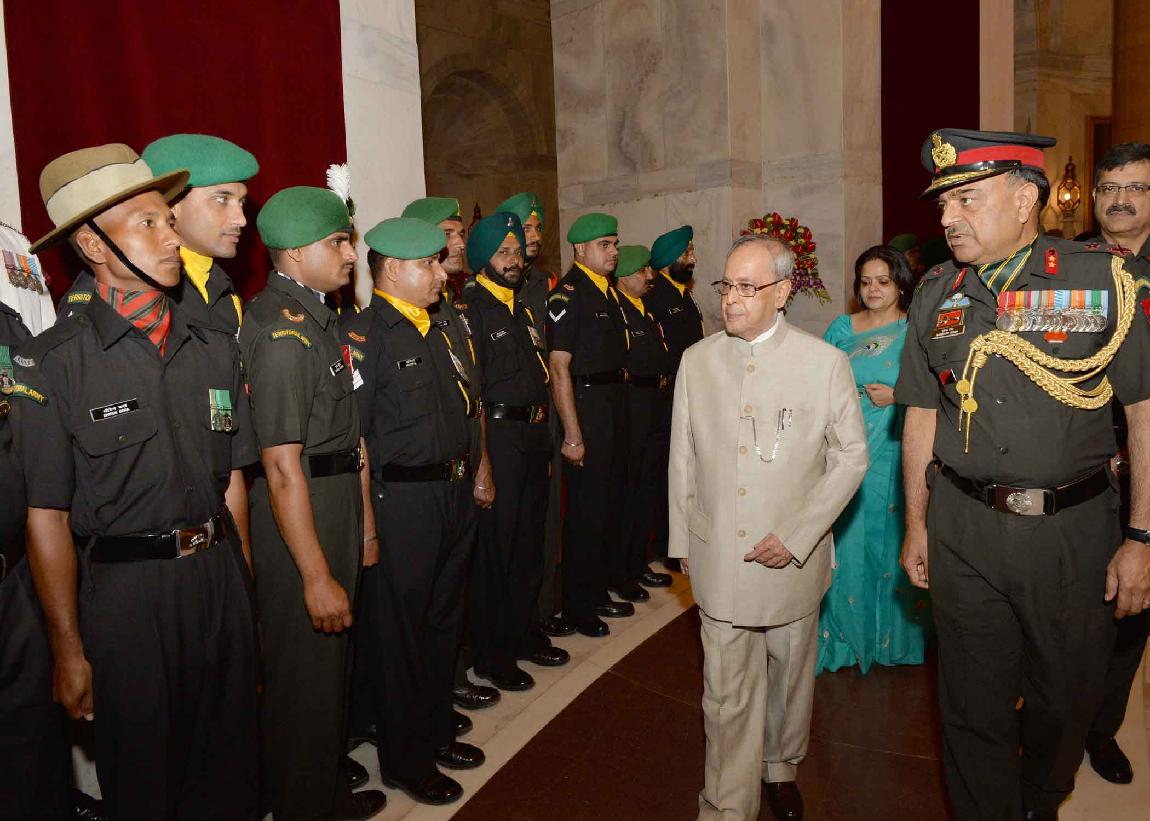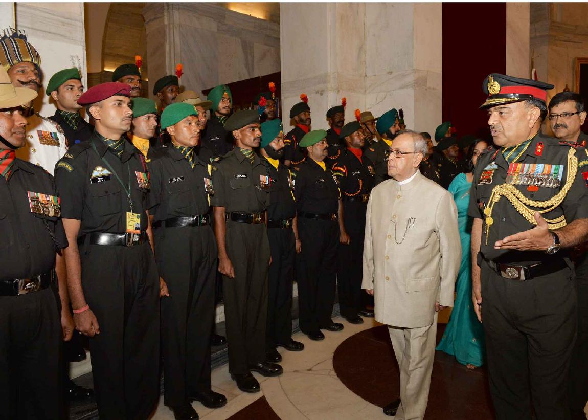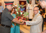 | Caption: | The President of India, Shri Pranab Mukherjee meeting with the Territorial Army Officers, JCO and other Ranks along with their spouses on the occasion of Raising Day of Territorial Army, at Rashtrapati Bhavan on October 06, 2015. |