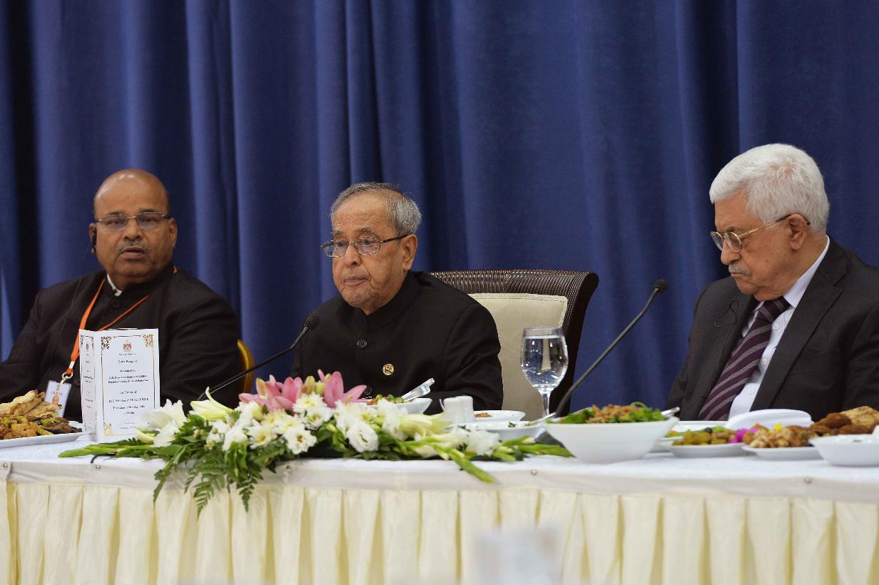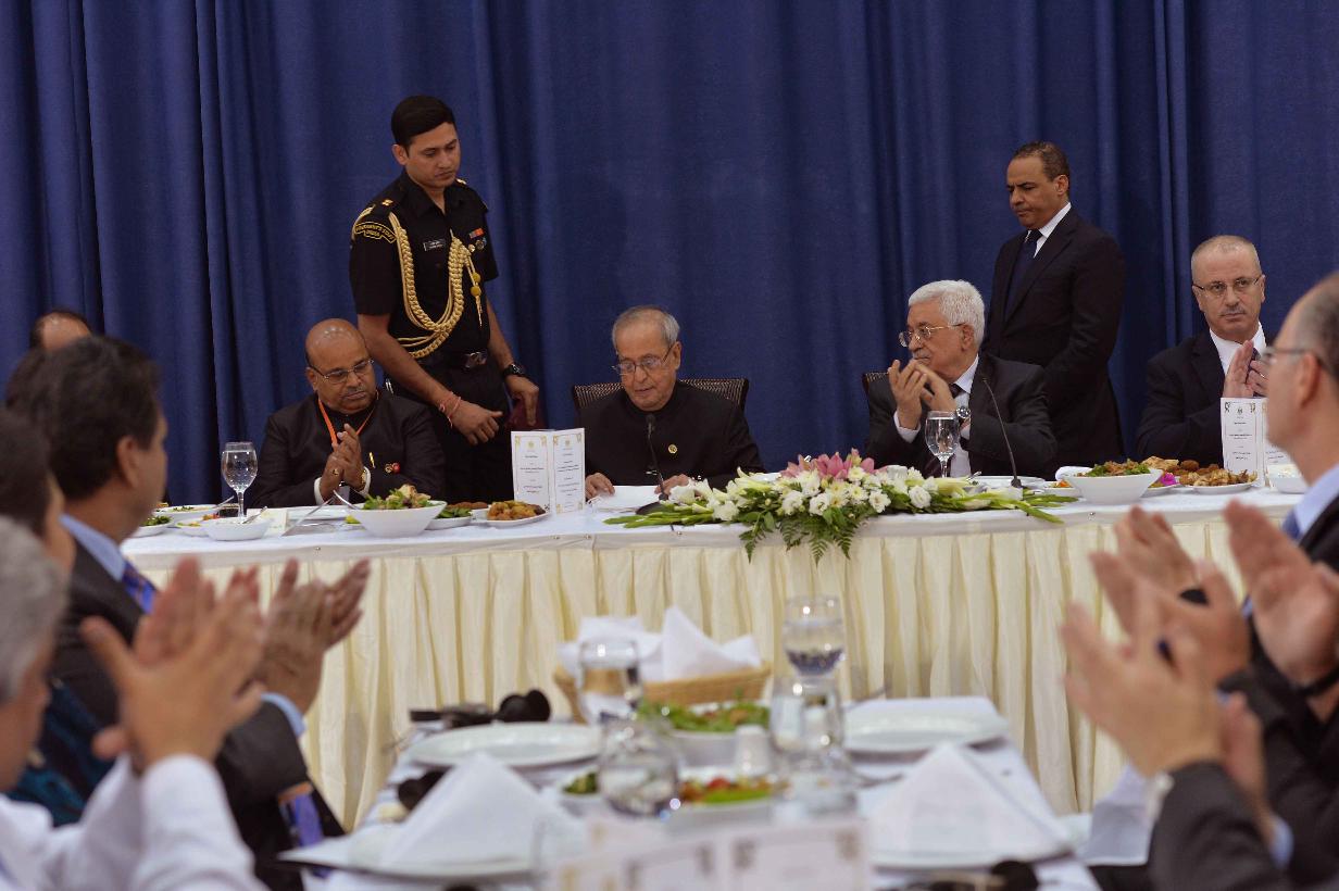 | Caption: | The President of India, Shri Pranab Mukherjee during the Banquet hosted by the President, Palestine, Mr. Mahmoud Abbas at Presidential Palace, Ramallah, in Palestine on October 12, 2015. |