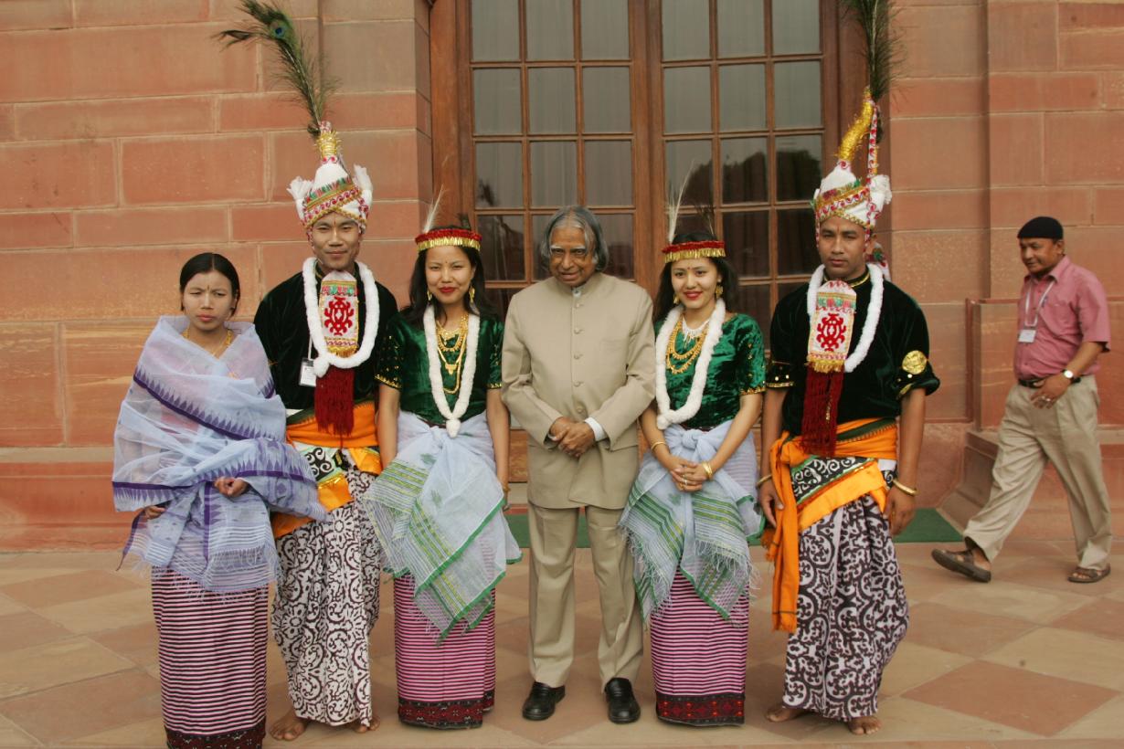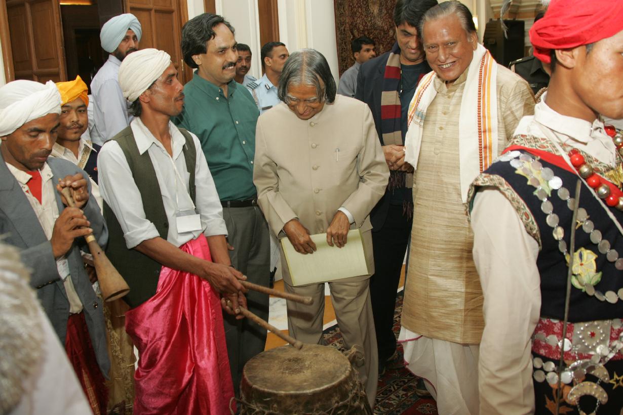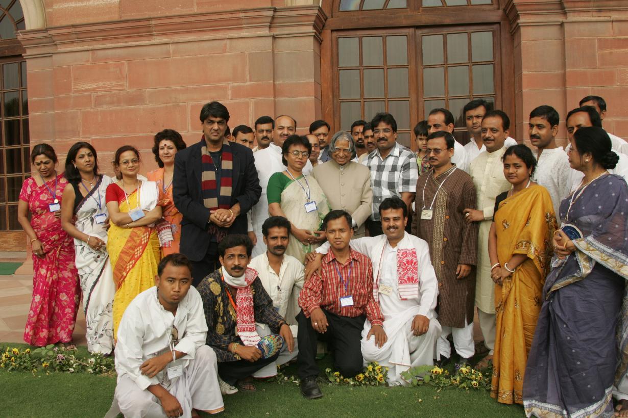 | Caption: | The Artists from Sanskar Bharati calling on the President of India, Dr A P J Abdul Kalam at the Yellow Drawing Room at Rashtrapati Bhavan in New Delhi on April 08, 2005 |
