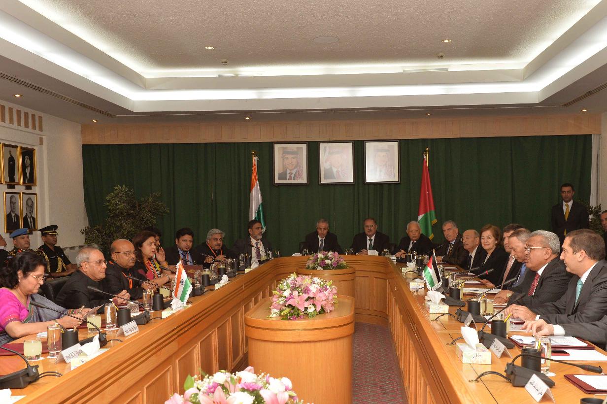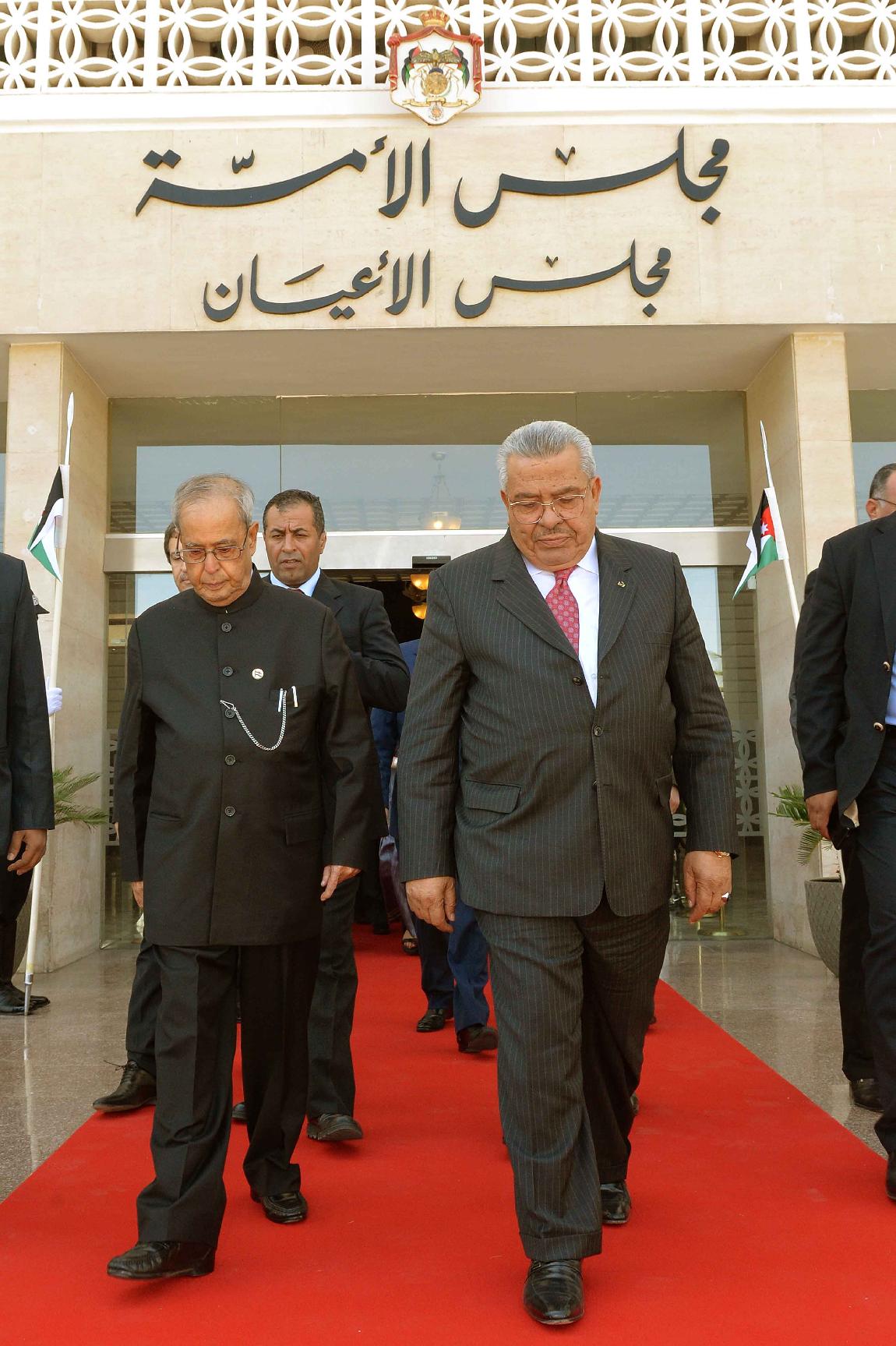 | Caption: | The President of India, Shri Pranab Mukherjee meeting with the President of Senate, H.E. Dr. Abdur-Raúf Rawabdeh and Members of the Foreign Relations Committee at Parliament Building, at Amman, in Jordan on October 11, 2015. |