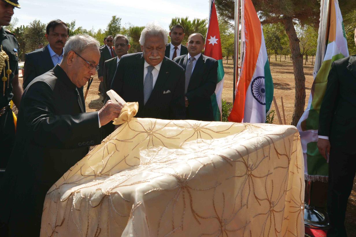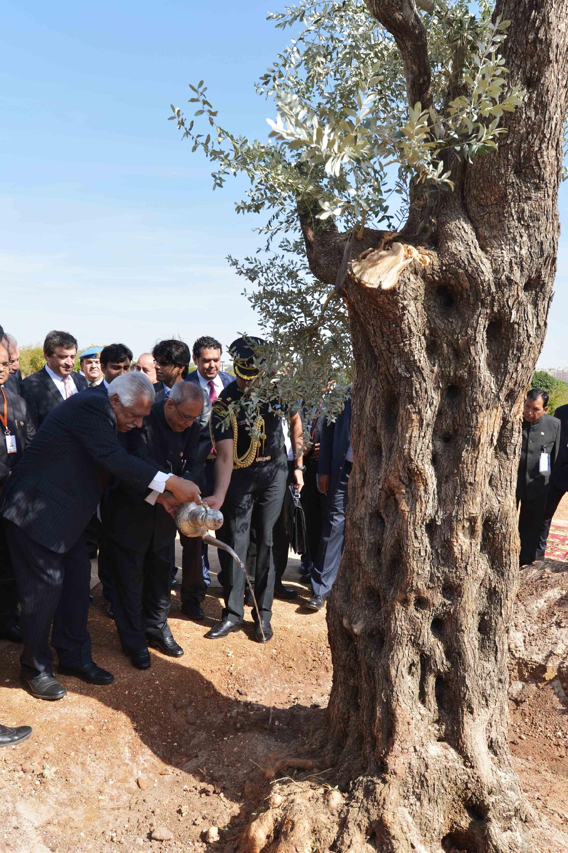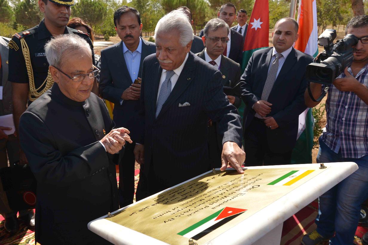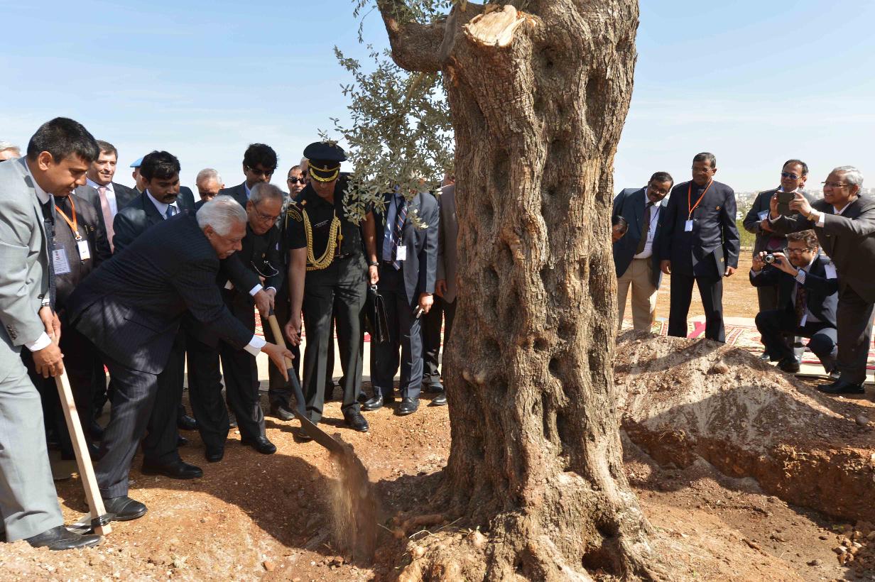 | Caption: | The President of India, Shri Pranab Mukherjee planting an Olive Tree at the Al Hussein Peace Park, at Amman in Jordan on October 11, 2015. |