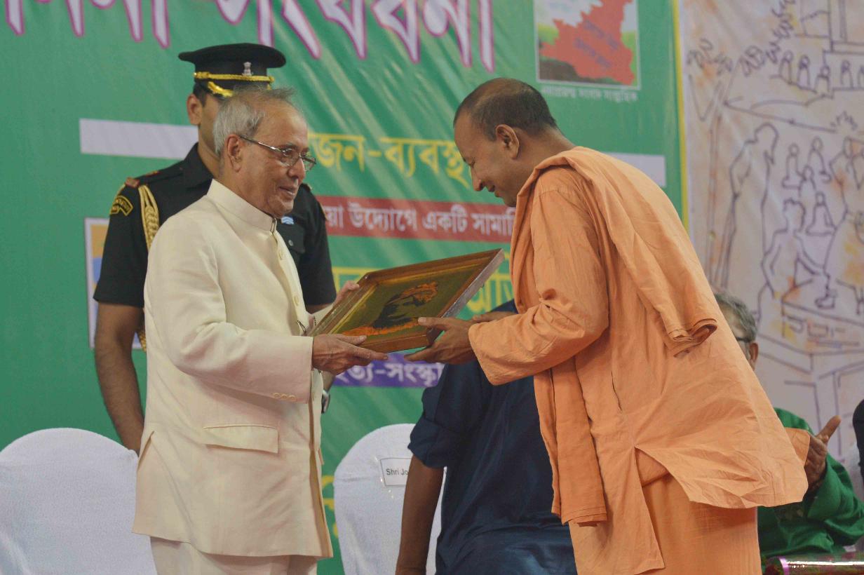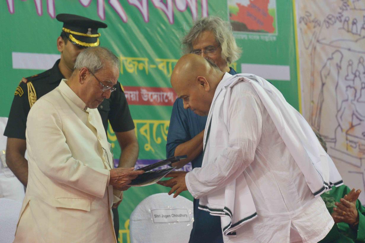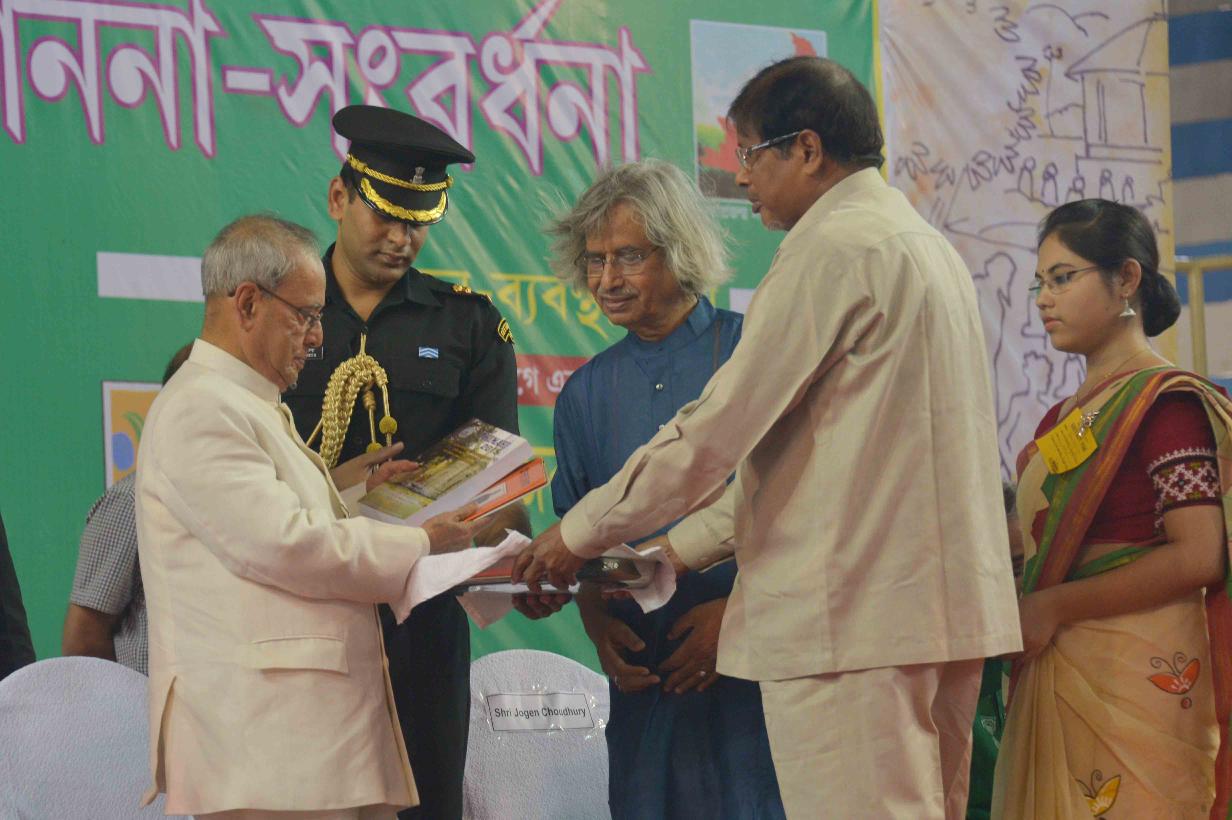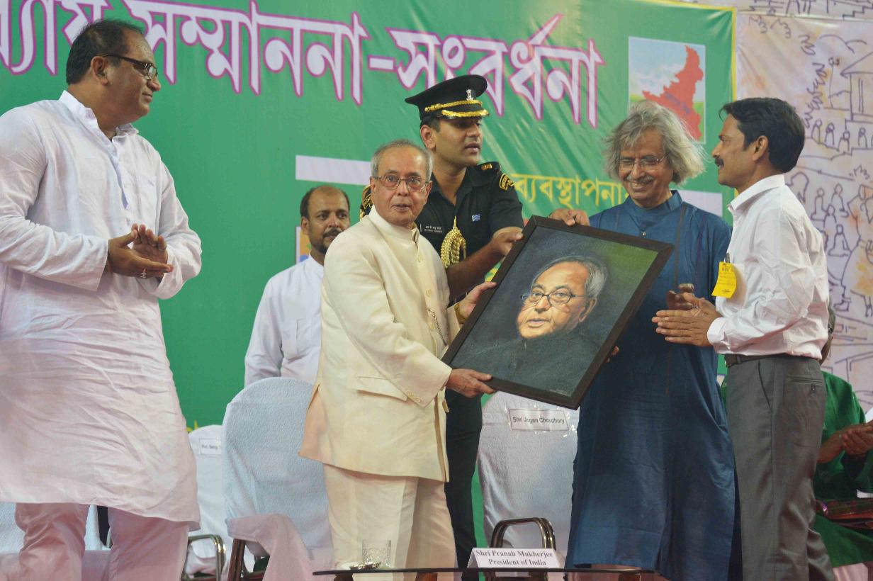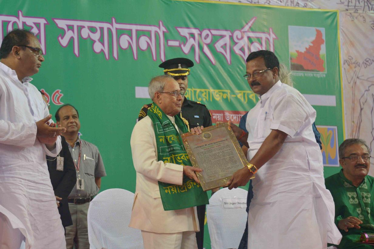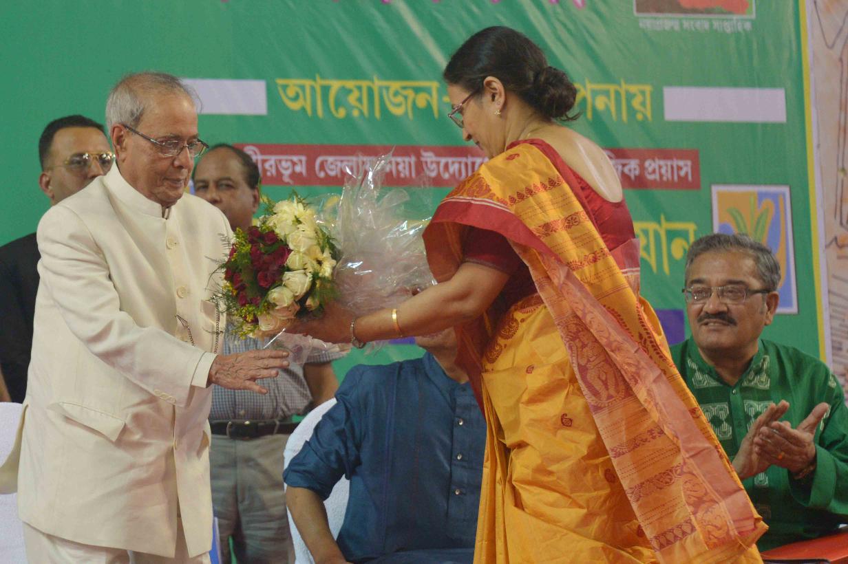 | Caption: | The President of India, Shri Pranab Mukherjee attending the felicitation function organized by Nayaprajanma, a local weekly newspaper and Suri Sabujer Abhijan, a cultural organization at Birbhum Indoor Stadium, in West Bengal on October 19, 2015. |
