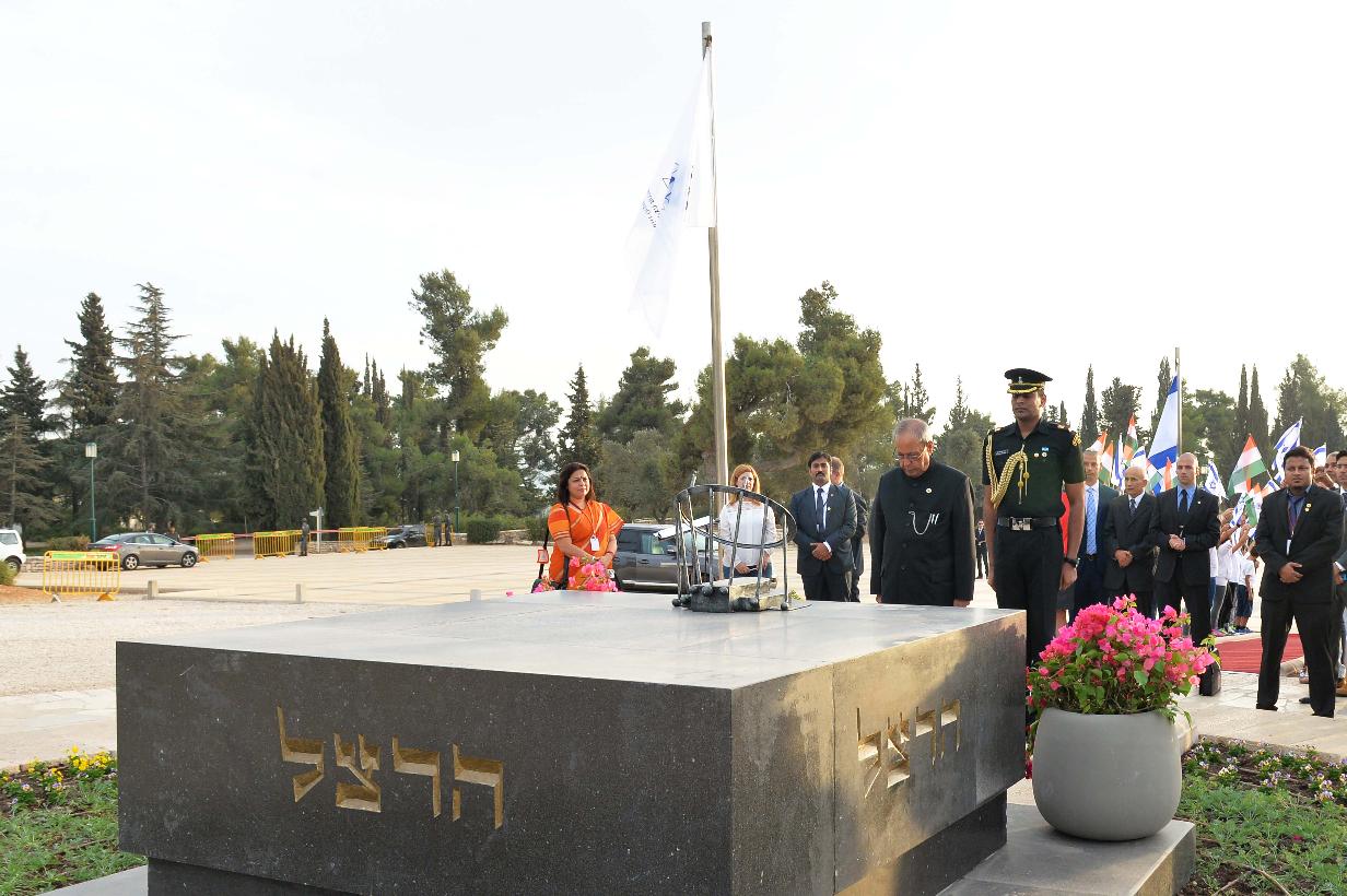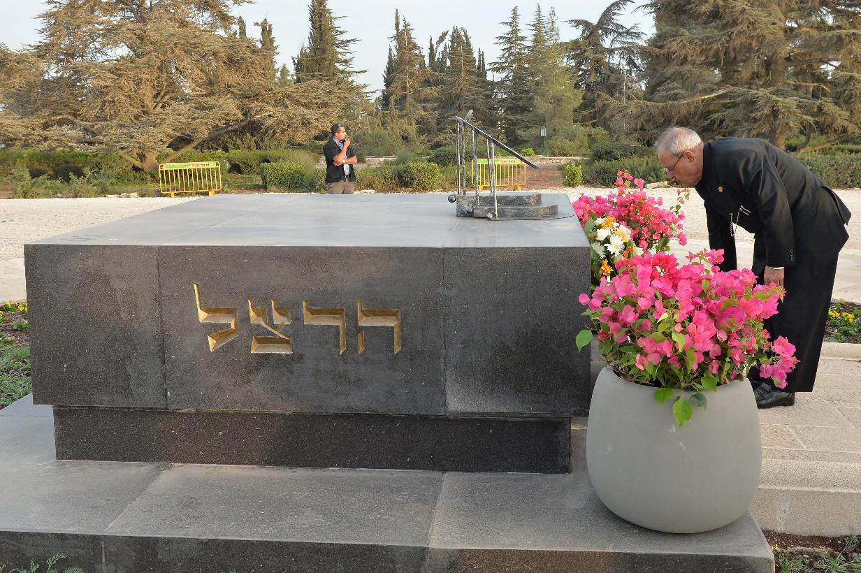 | Caption: | The President of India, Shri Pranab Mukherjee laying wreath at the tomb of Theodor Herzl, at Mount Herzl, Jerusalem, in Israel on October 13, 2015. |