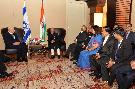 | Caption: | The former President of Israel, Mr. Simon Peres calling on the President of India, Shri Pranab Mukherjee along with his official delegation members, at Hotel David, Jerusalem in Israel on October 14, 2015. |