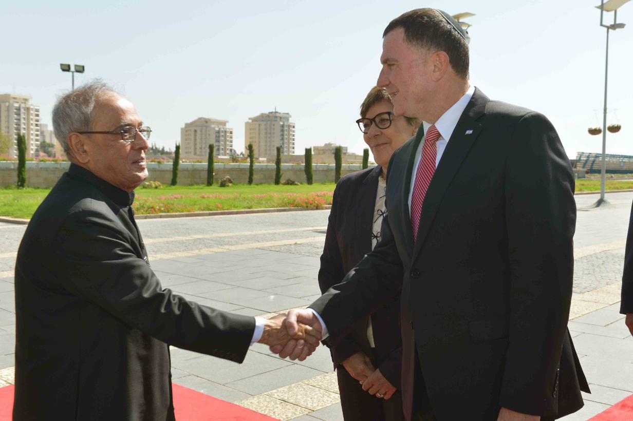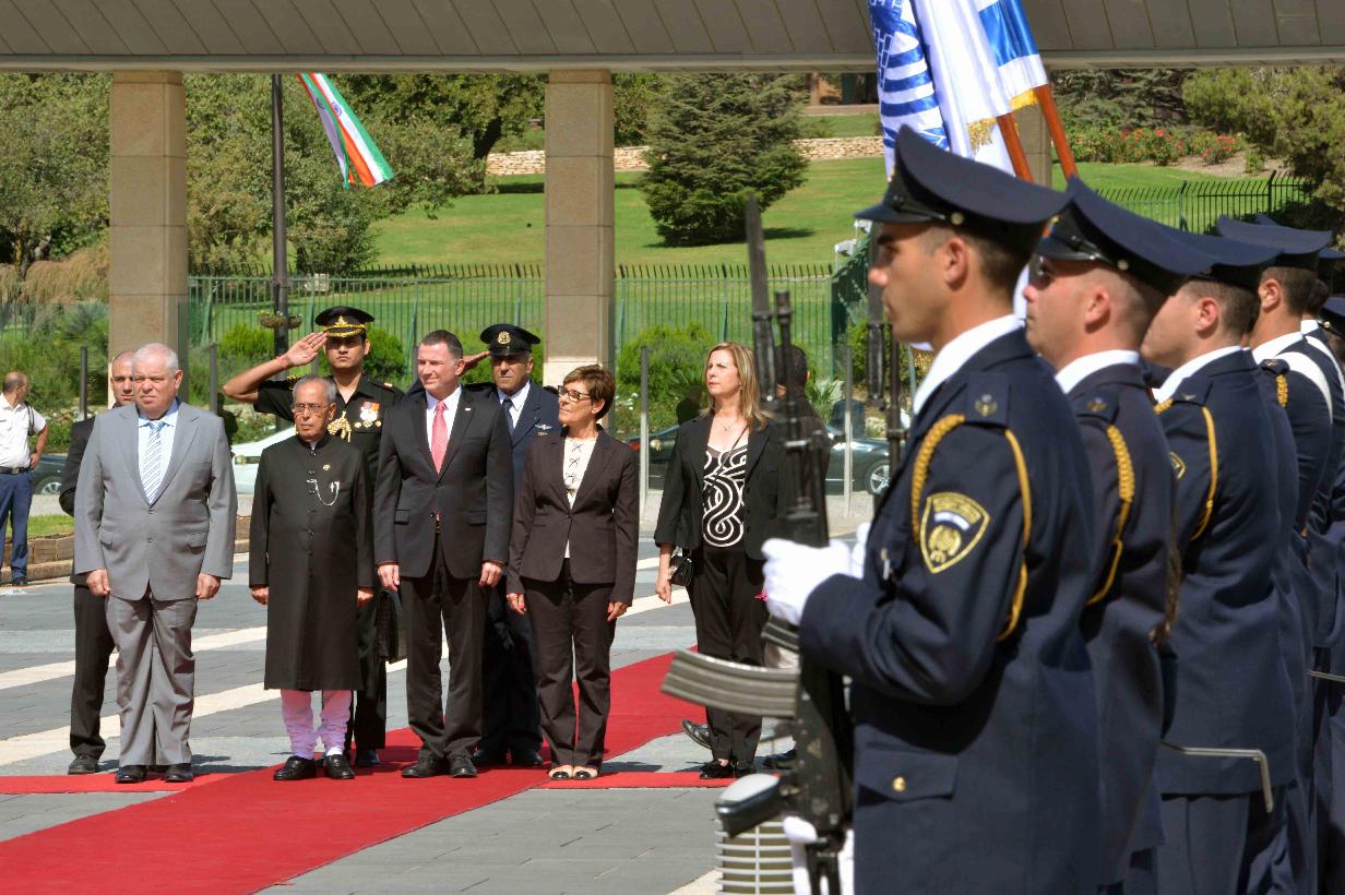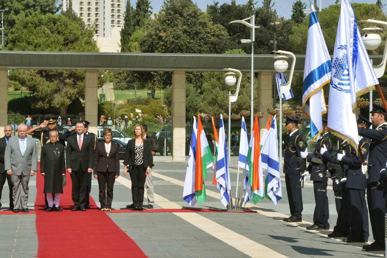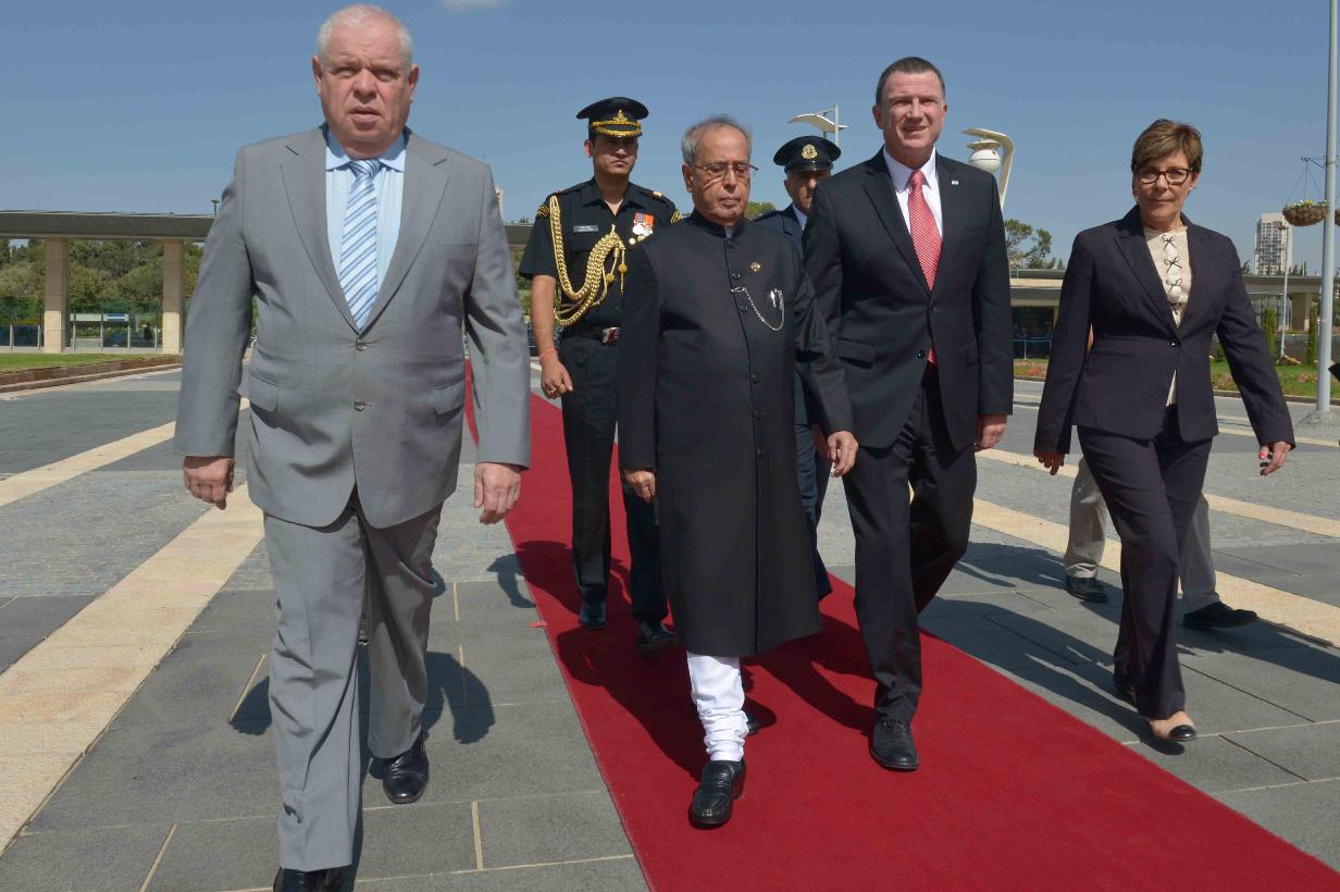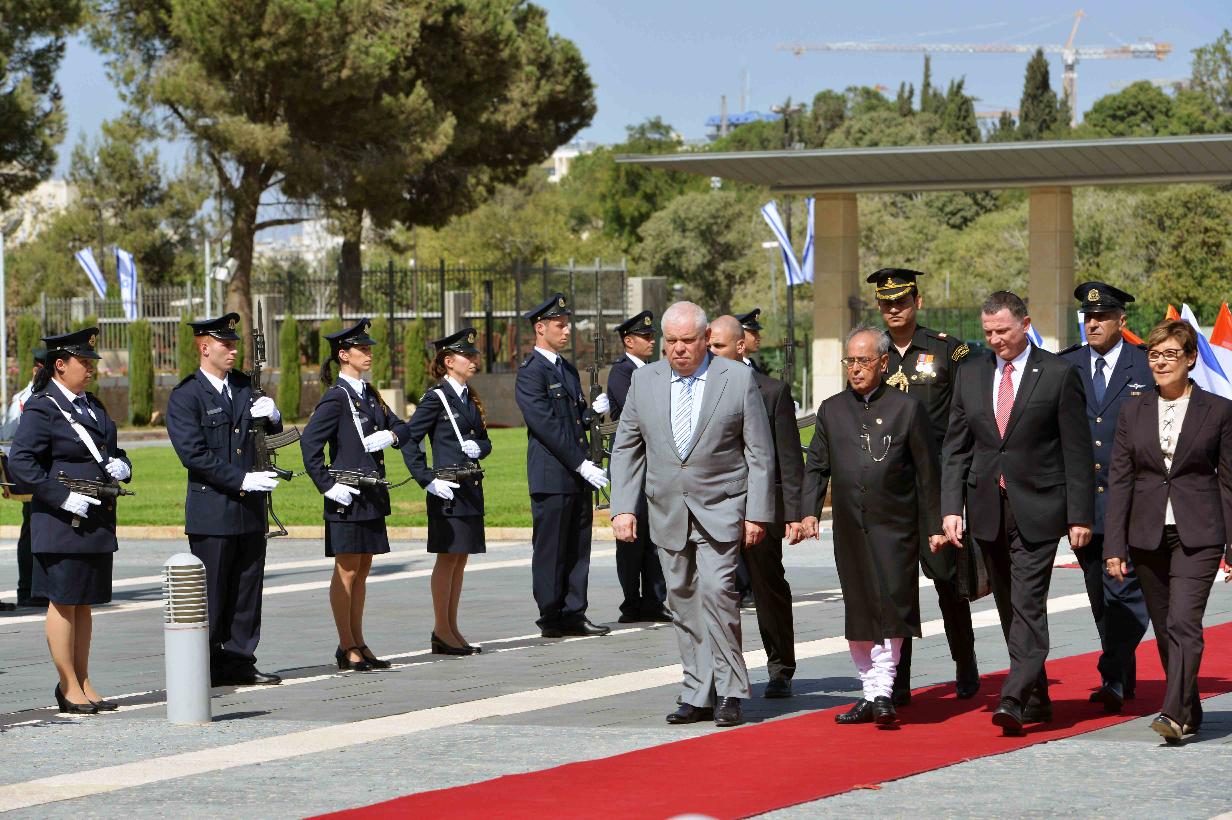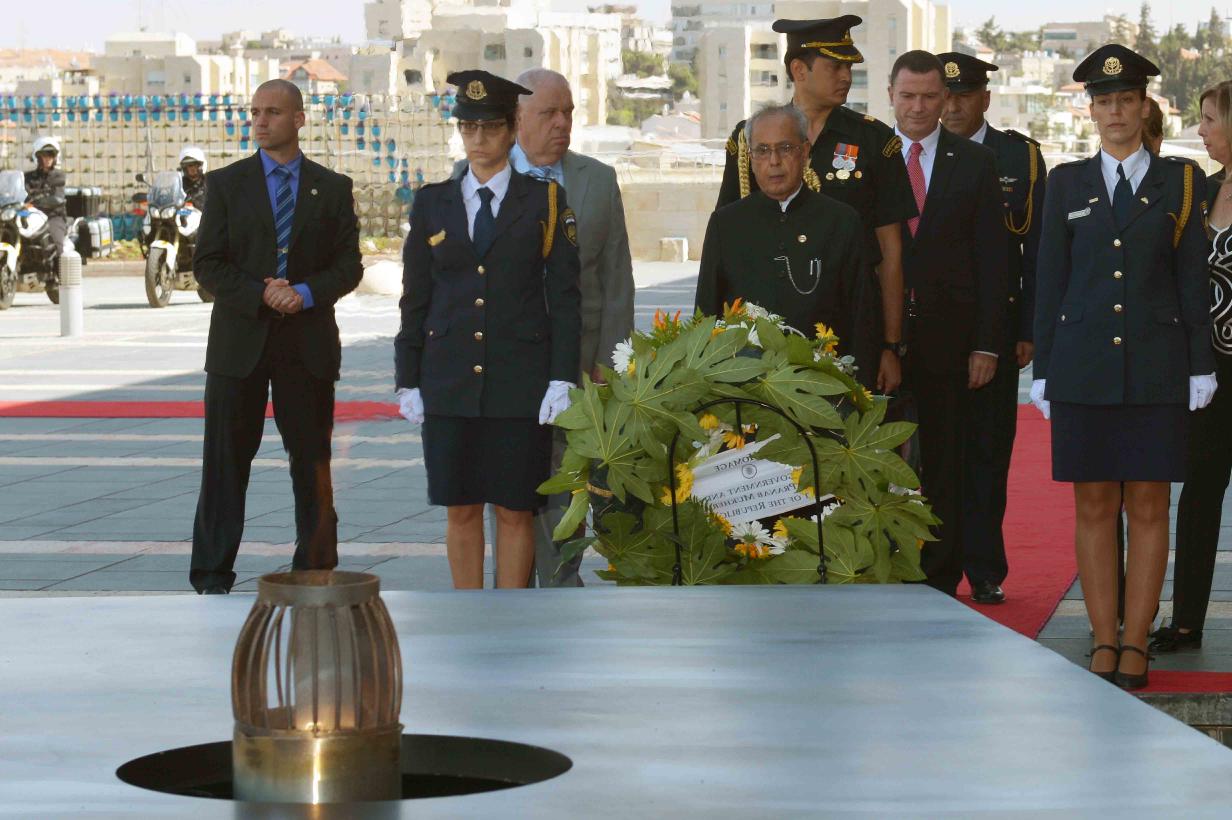 | Caption: | The President of India, Shri Pranab Mukherjee arrives at Knesset and laying a wreath at the Gal-Ed memorial for the fallen of Israel s wars, at Jerusalem, during his State visit of Israel on October 14, 2015. |