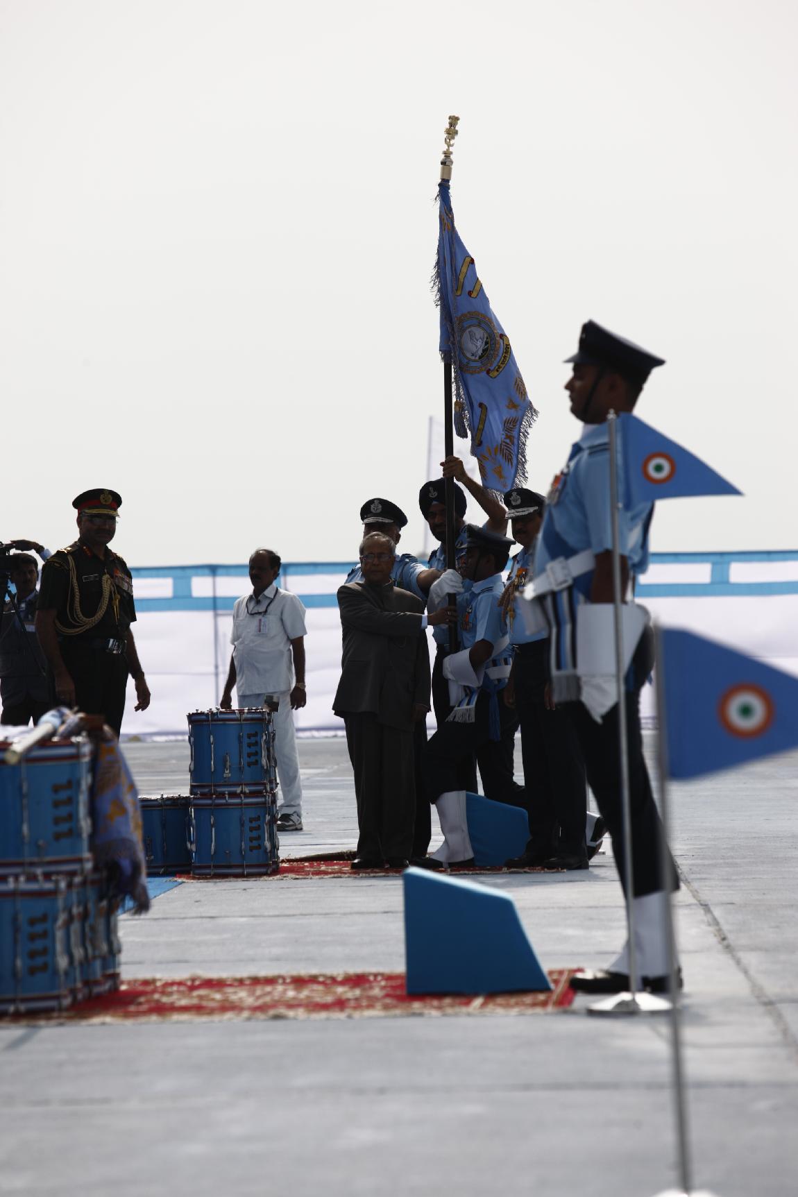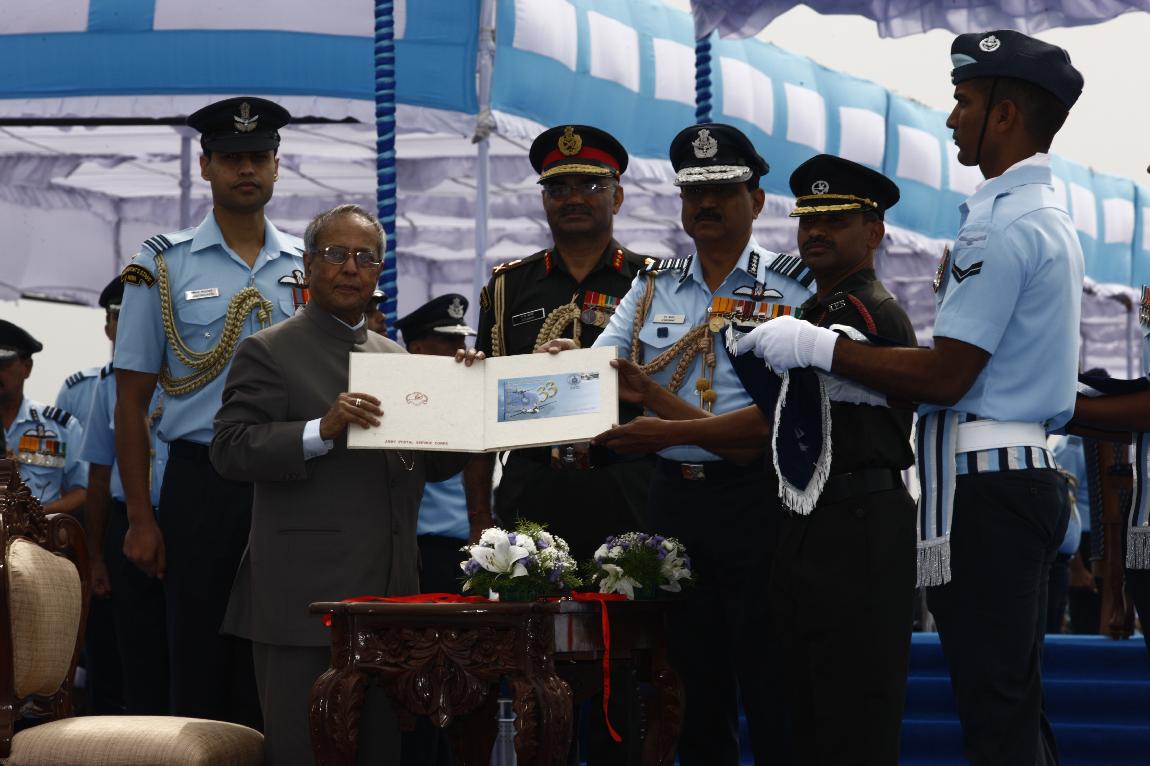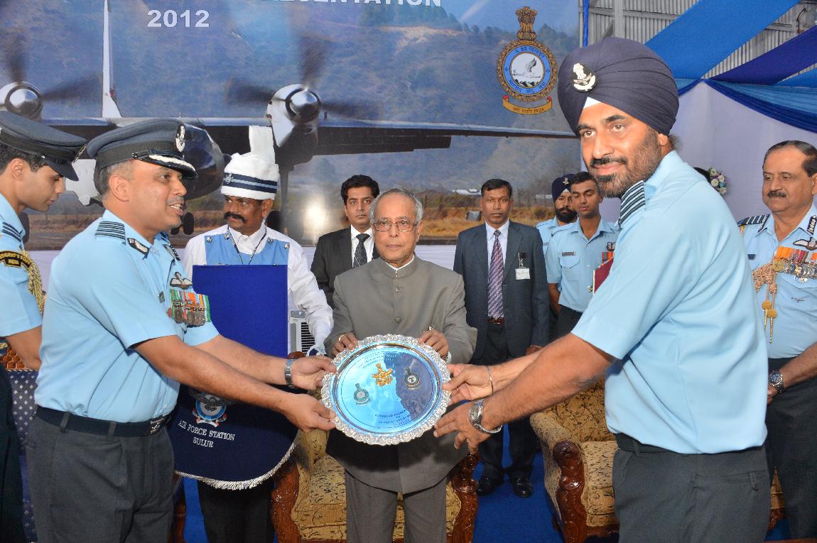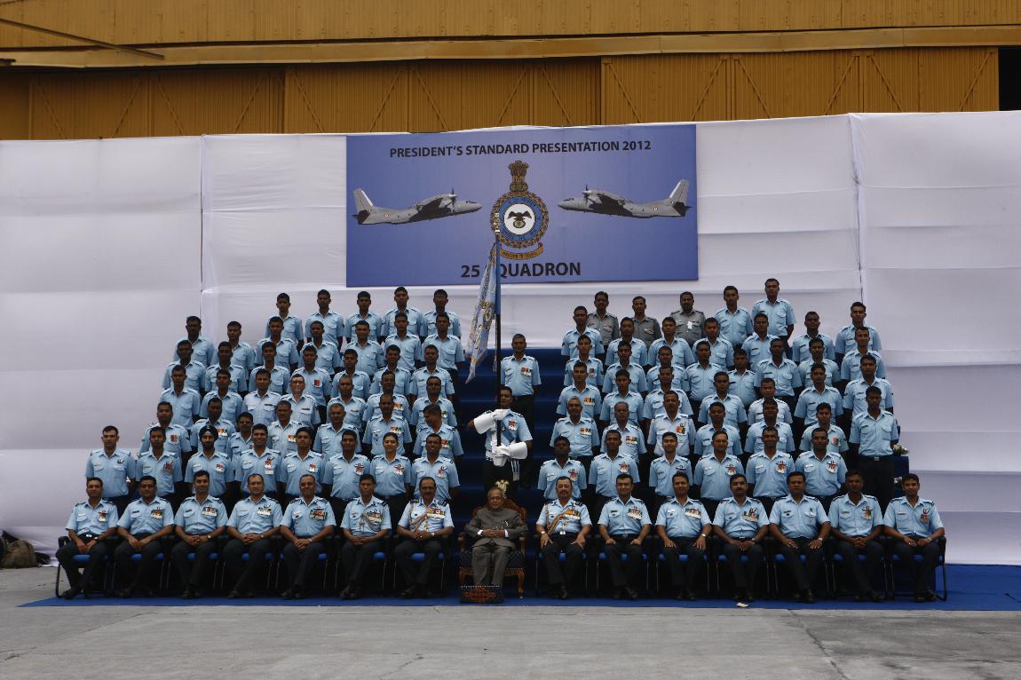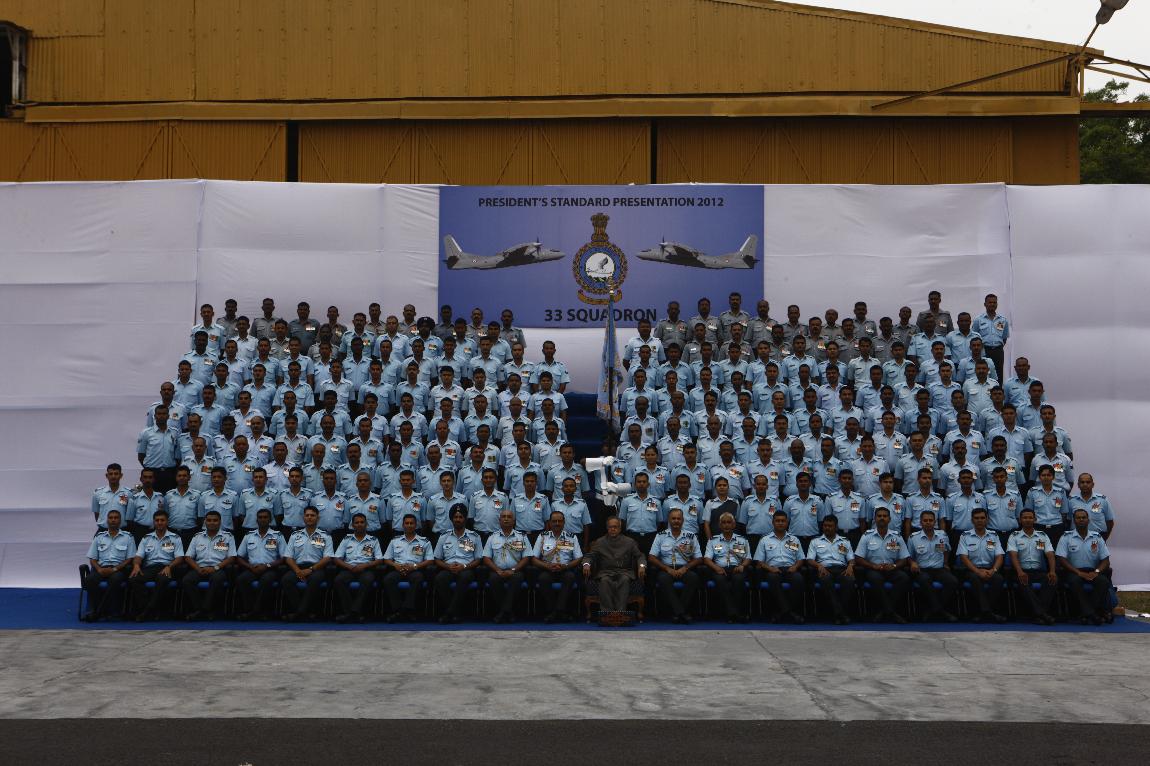 | Caption: | The President of India, Shri Pranab Mukherjee Attending Presentation of Presidential Standard to 25 SQN and 33 SQN IAF on Dec 18, 2012 |
