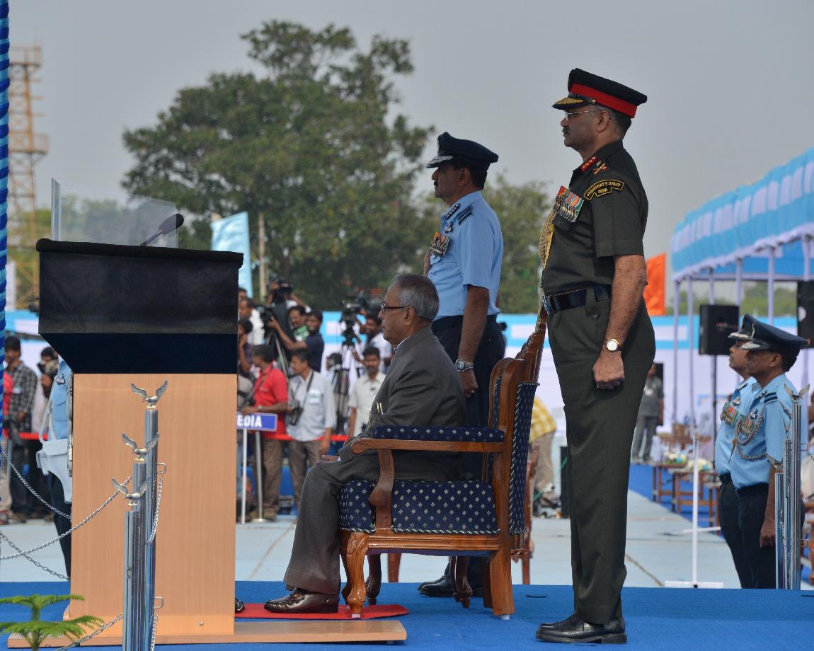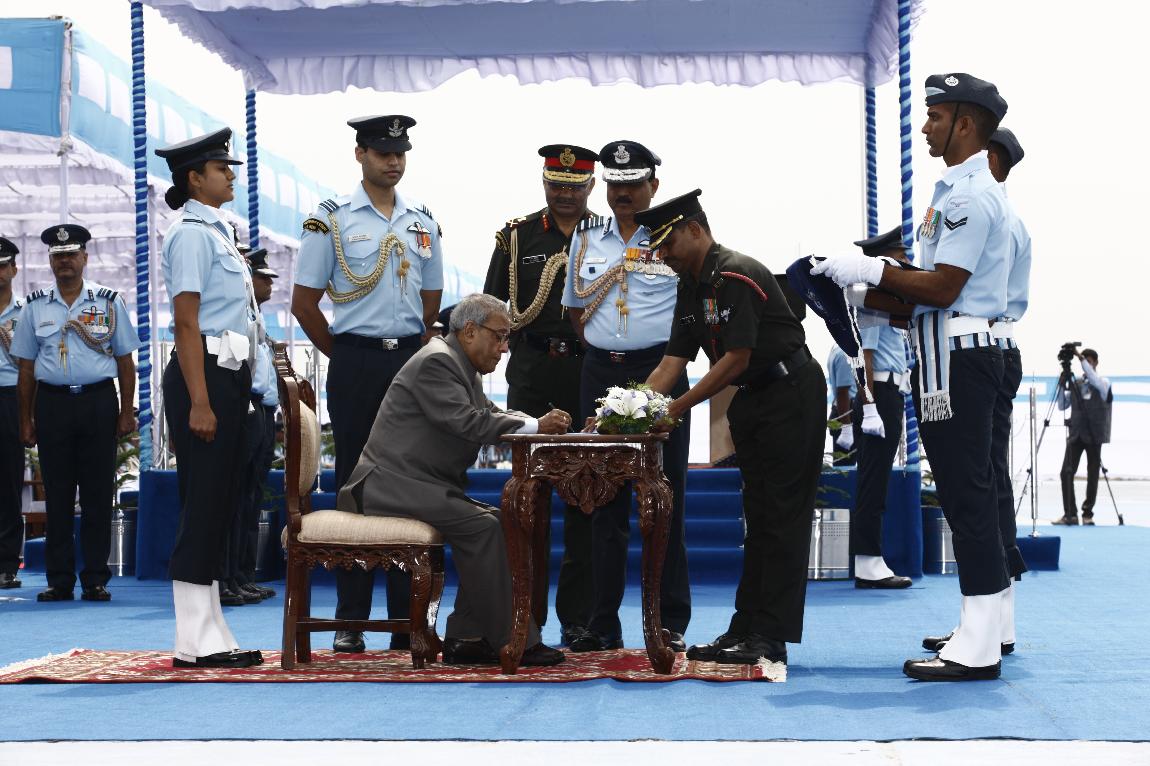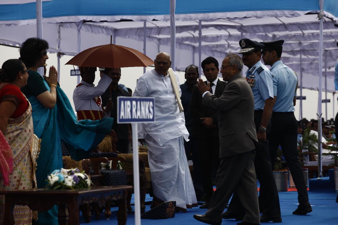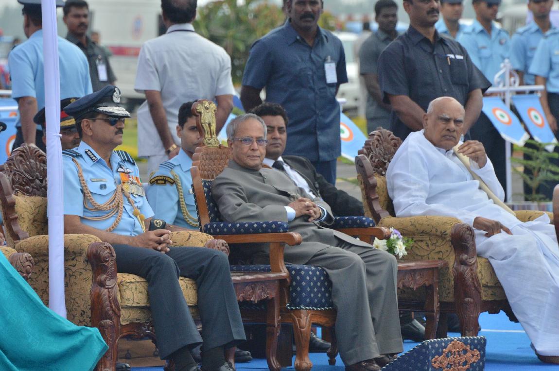 | Caption: | The President of India, Shri Pranab Mukherjee Attending Presentation of Presidential Standard to 25 SQN and 33 SQN IAF on Dec 18, 2012 |
