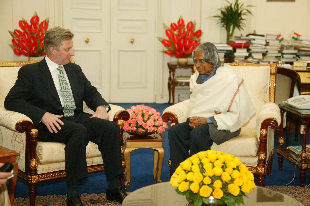 | Caption: | The HRH Prince Philippe of Belgium and HRH Princess Mathilde calling on the President of India, Dr A P J Abdul Kalam at the Morning Room of Rashtrapati Bhavan in New Delhi on March 14, 2005 |