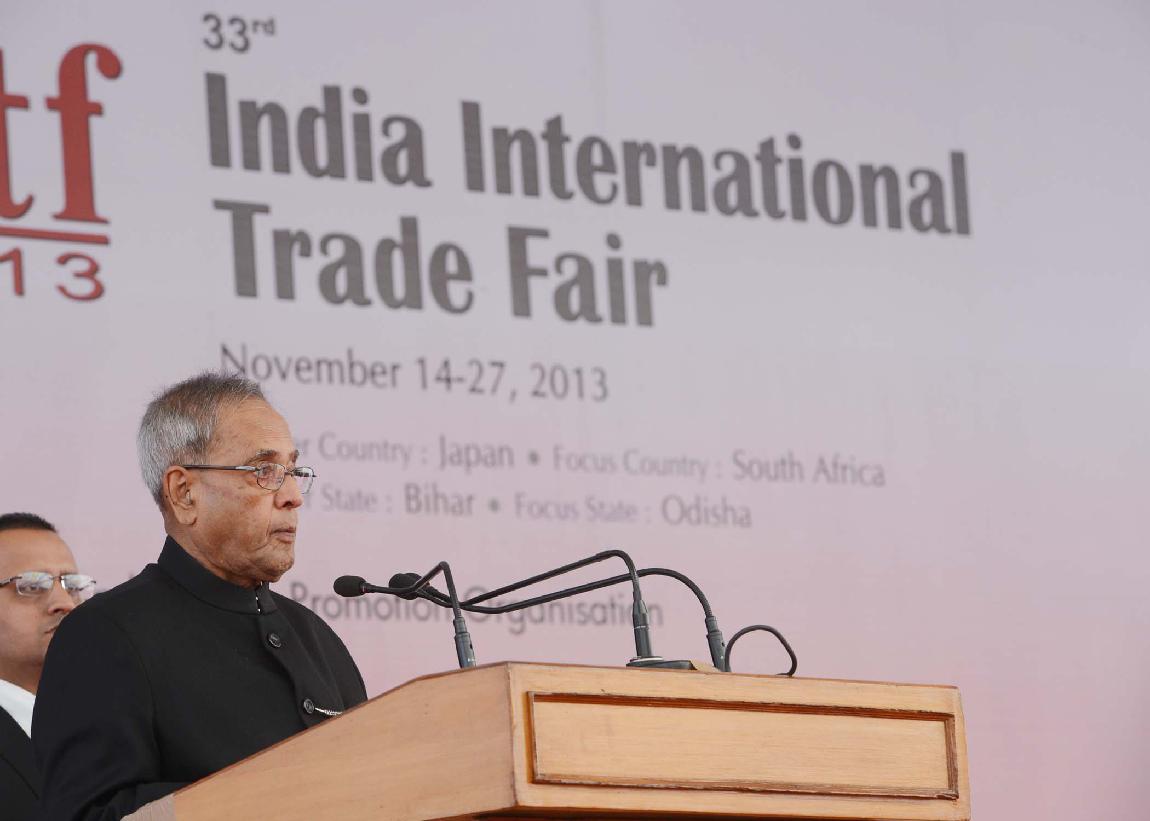 | Caption: | The President of India, Shri Pranab Mukherjee inaugurating the 33rd India International Trade Fair (IITF) at Hamsadhwani Theatre, Pragati Maidan in New Delhi on Nov 14, 2013 |