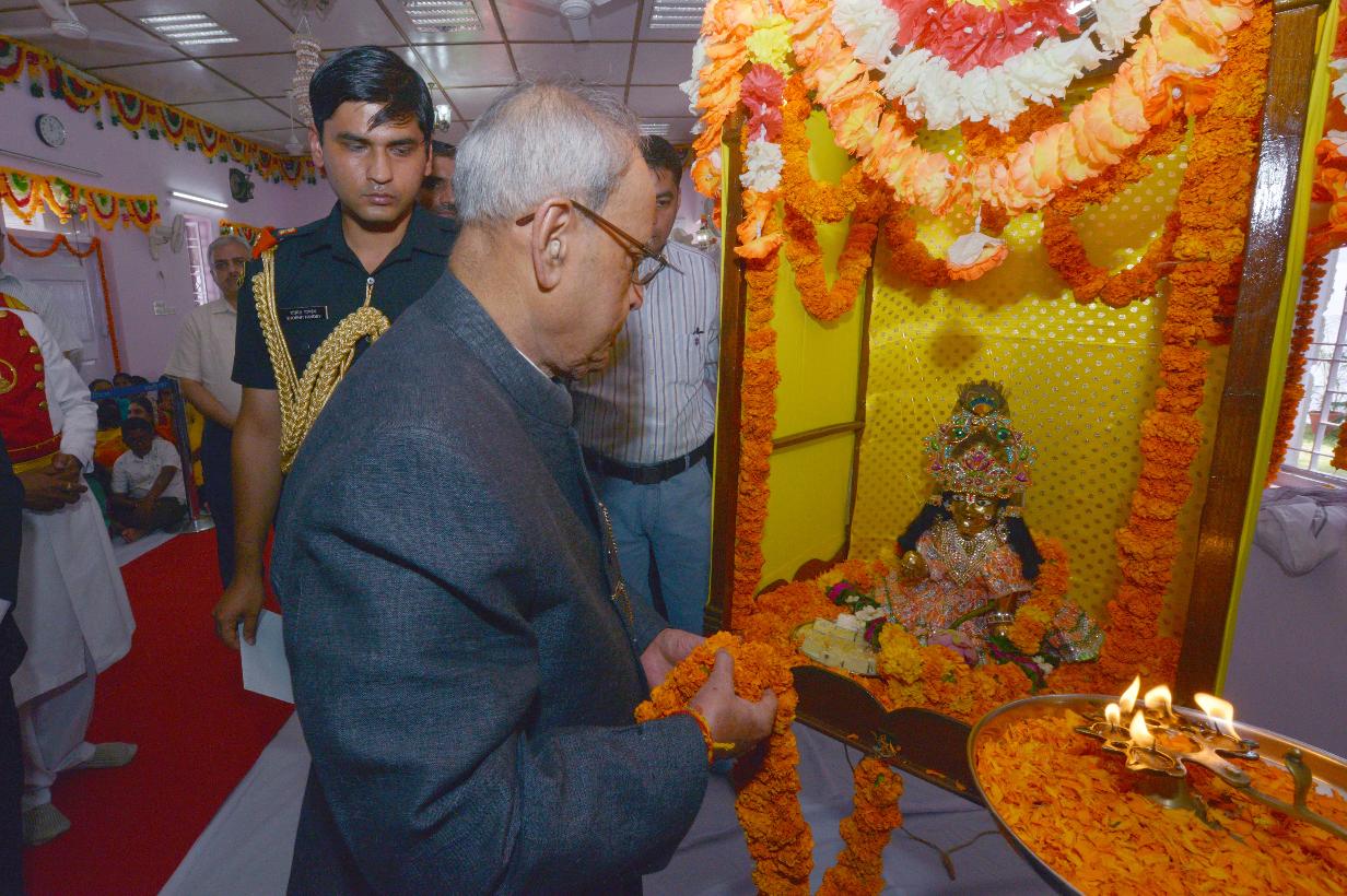 | Caption: | The President of India, Shri Pranab Mukherjee paying obeisance, at Shiv Mandir, President's Estate on the occasion of Janmashtami, in New Delhi on September 05, 2015. |