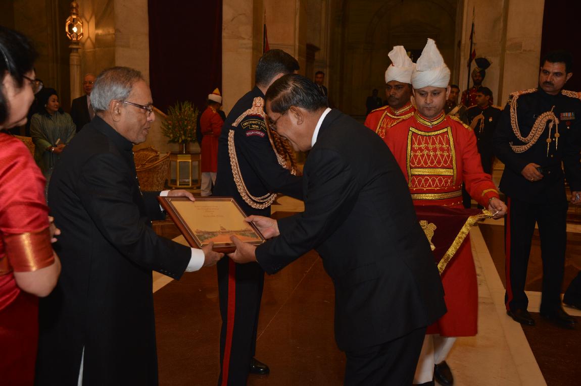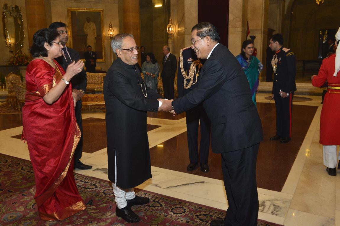 | Caption: | The President of India, Shri Pranab Mukherjee with The Prime Minister of The Kingdom of Cambodia Delegation of ASEAN-India Special Commemorative Summit (Call on & Farewell) on Dec 20, 2012 |