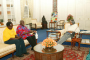 | Caption: | The President of India, Dr A P J Abdul Kalam meeting with the Former President of Zambia, Dr Kenneth D Kaunda at Rashtrapati Bhavan in New Delhi on March 15, 2005 |