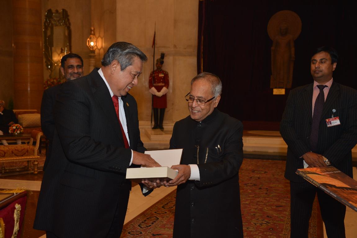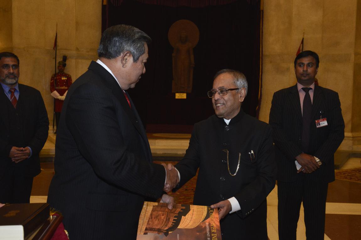 | Caption: | The President of India, Shri Pranab Mukherjee with The President of Republic of Indonesia Delegation of ASEAN-India Special Commemorative Summit (Call on & Farewell) on Dec 20, 2012 |