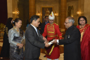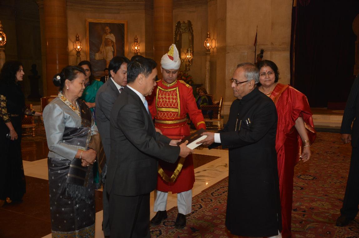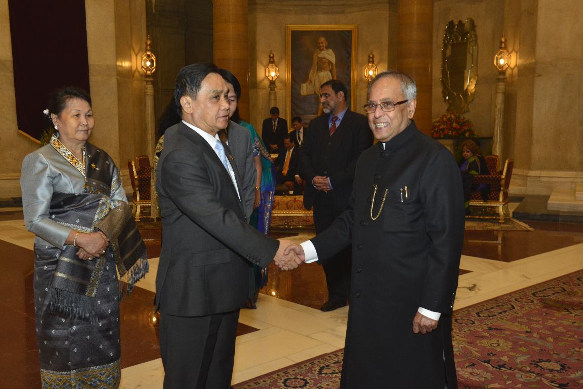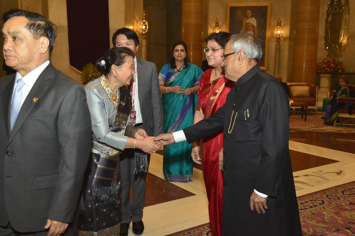 | Caption: | The President of India, Shri Pranab Mukherjee with The Prime Minister of People's Democratic Republic of Laos Delegation of ASEAN-India Special Commemorative Summit (Call on & Farewell) on Dec 20, 2012 |