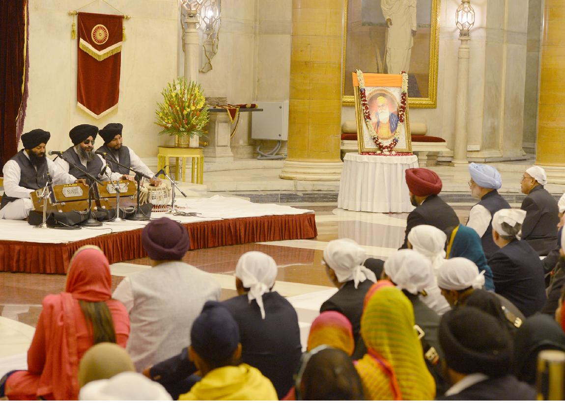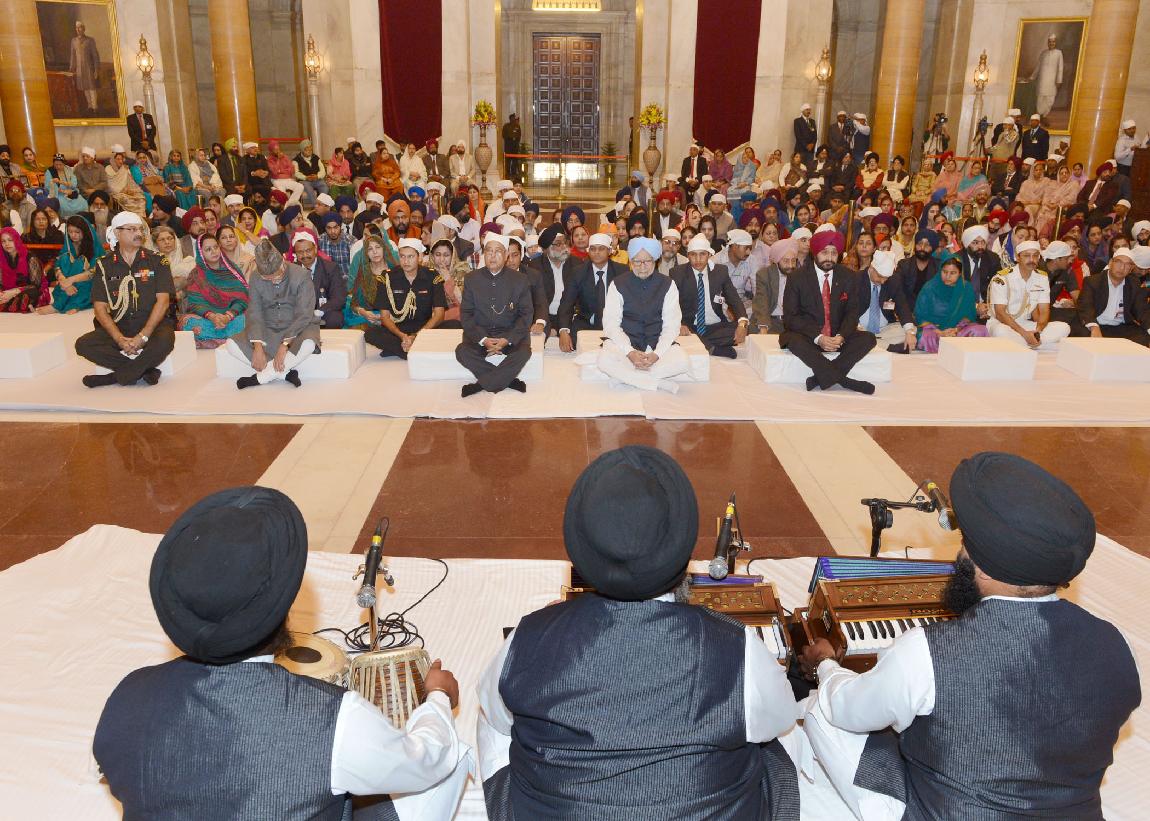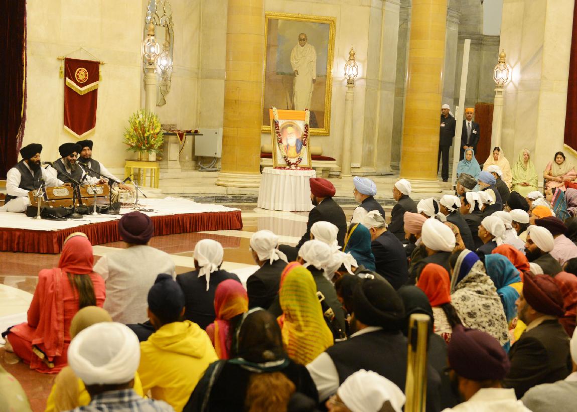 | Caption: | The President of India, Shri Pranab Mukherjee at the Gurbani Recital on the occasion of the 545th birth anniversary of Guru Nanak Dev at Rashtrapati Bhavan in New Delhi on Nov 17, 2013 |