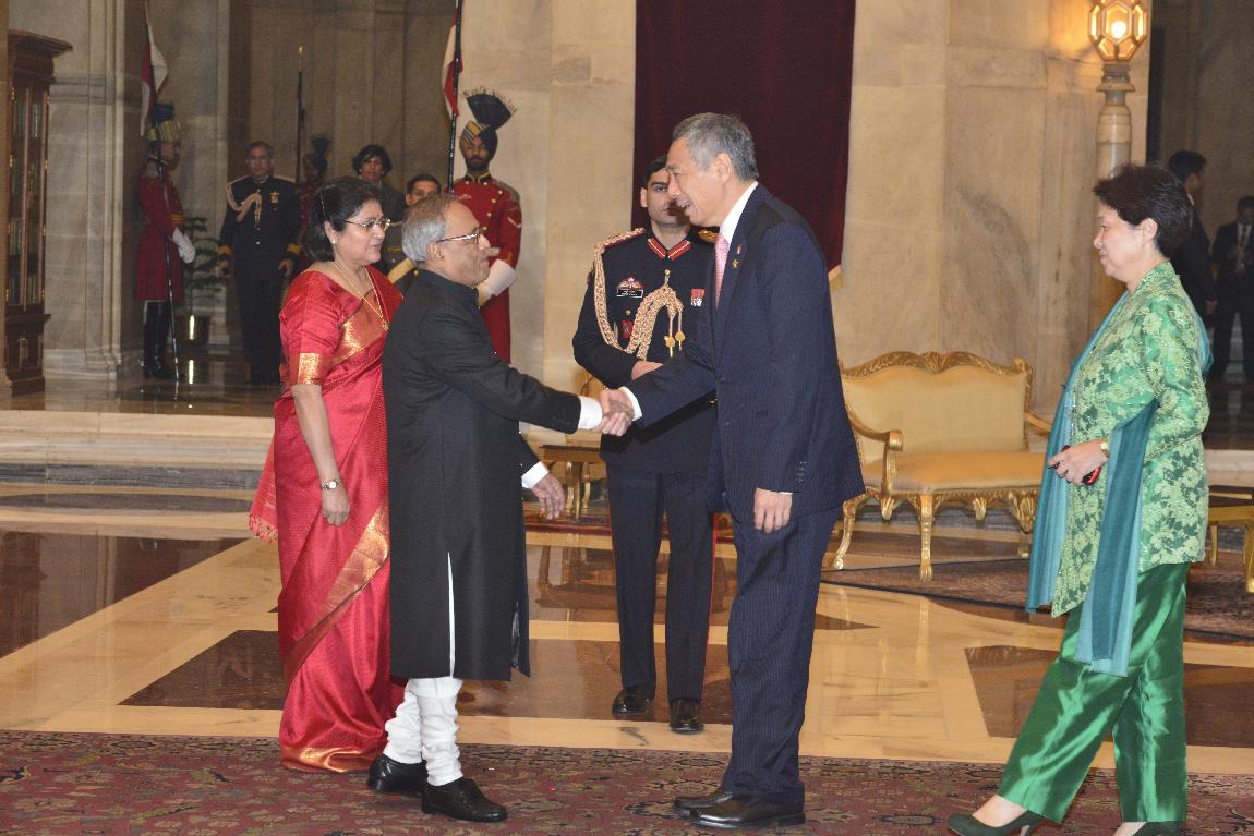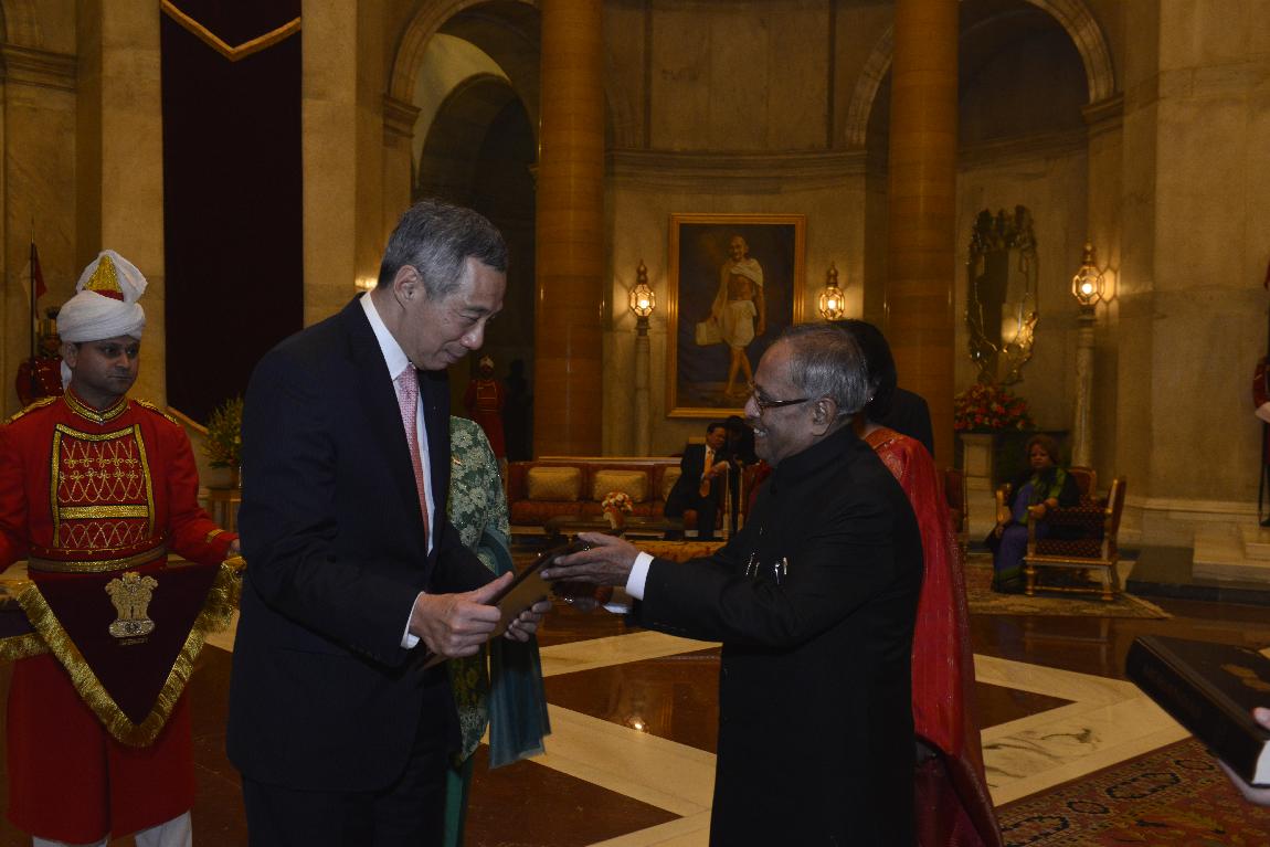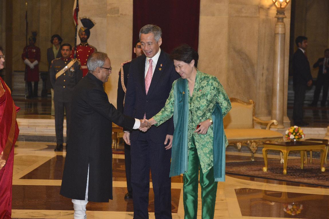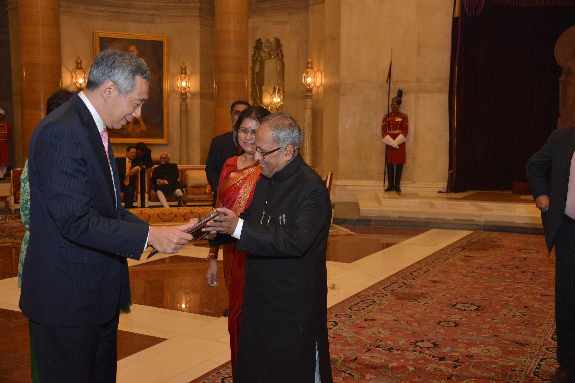 | Caption: | The President of India, Shri Pranab Mukherjee with The Prime Minister of The Republic of Singapore Delegation of ASEAN-India Special Commemorative Summit (Call on & Farewell) on Dec 20, 2012 |