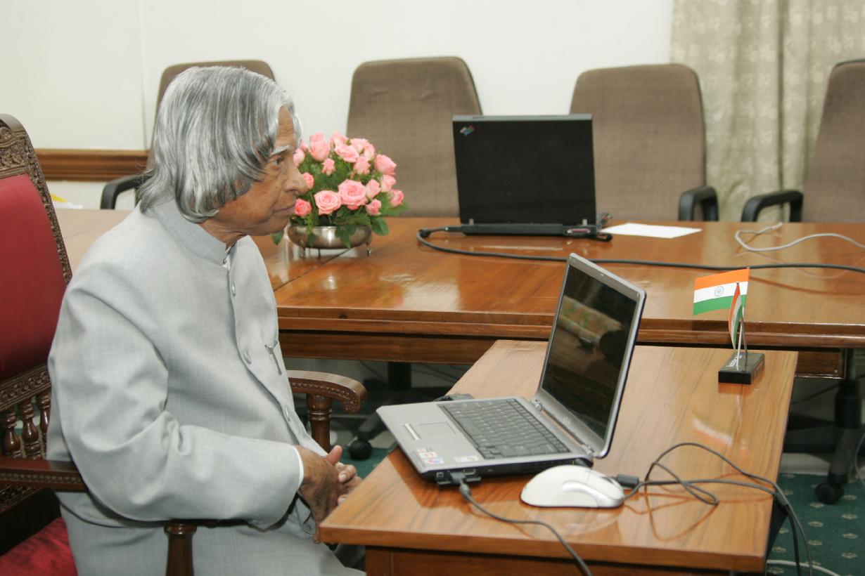 | Caption: | The President of India, Dr A P J Abdul Kalam doing Live Chat through internet on Rediff Com with the Youths at the TI Conference Room of Rashtrapati Bhavan in New Delhi on Nov 14, 2005 |