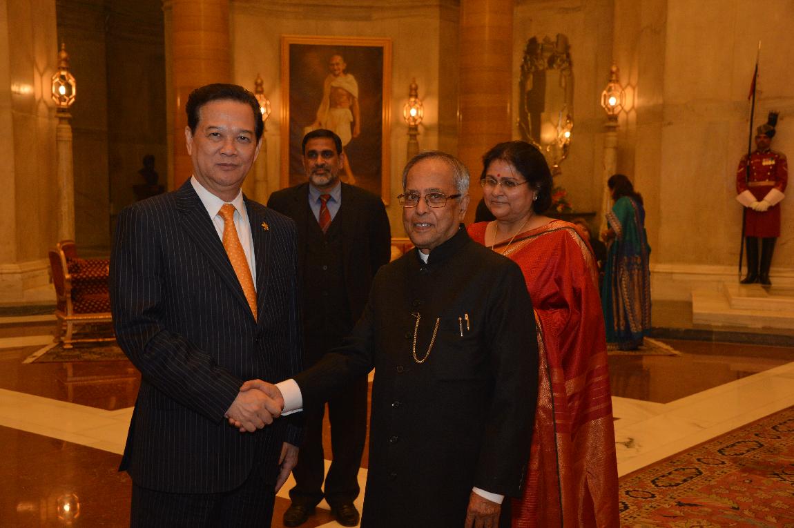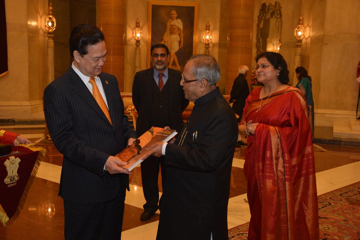 | Caption: | The President of India, Shri Pranab Mukherjee with The Prime Minister of The Socialist Republic of Vietnam Delegation of ASEAN-India Special Commemorative Summit (Call on & Farewell) on Dec 20, 2012 |