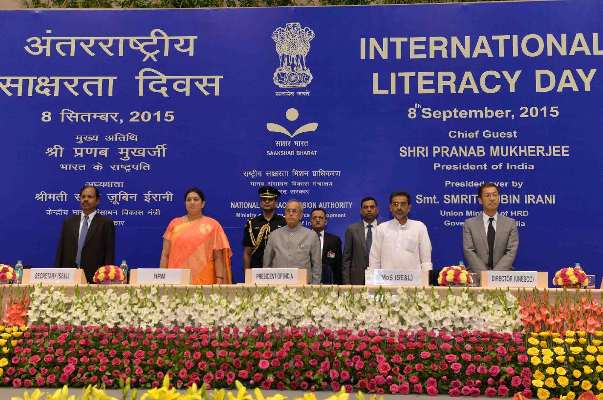 | Caption: | The President of India, Shri Pranab Mukherjee attending the International Literacy Day function, organized by the Ministry of Human Resource Development, in New Delhi on September 08, 2015. |