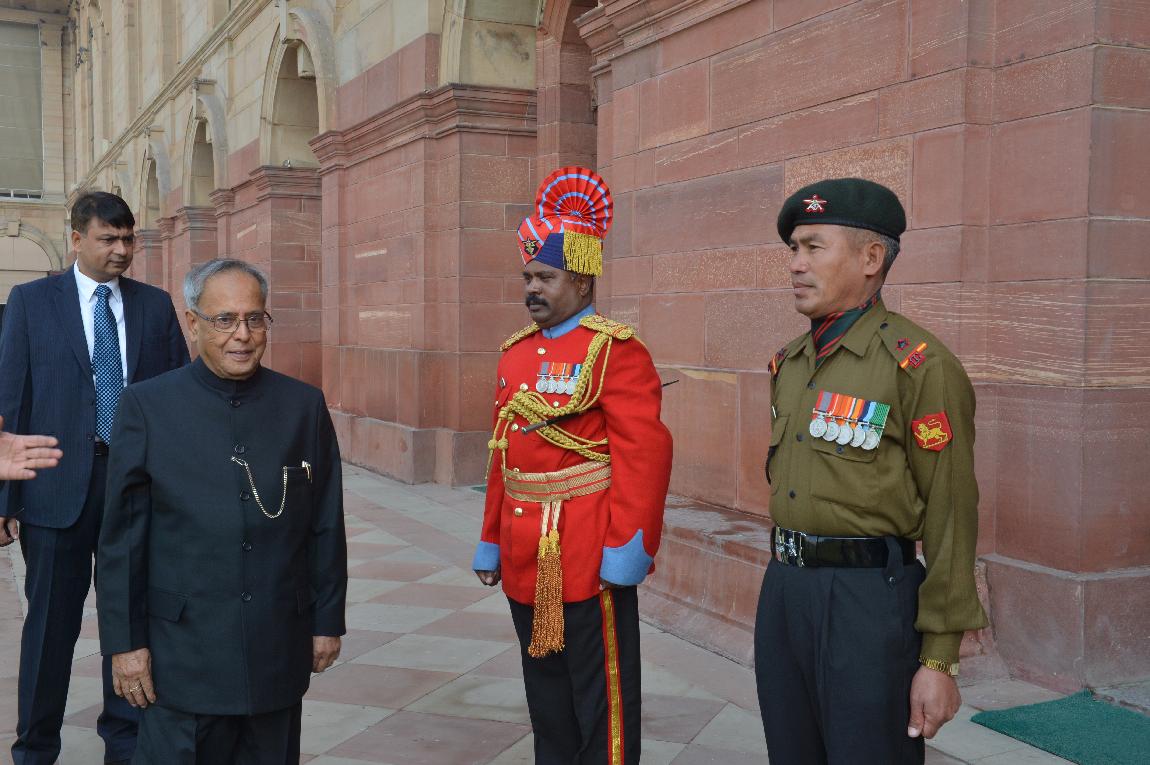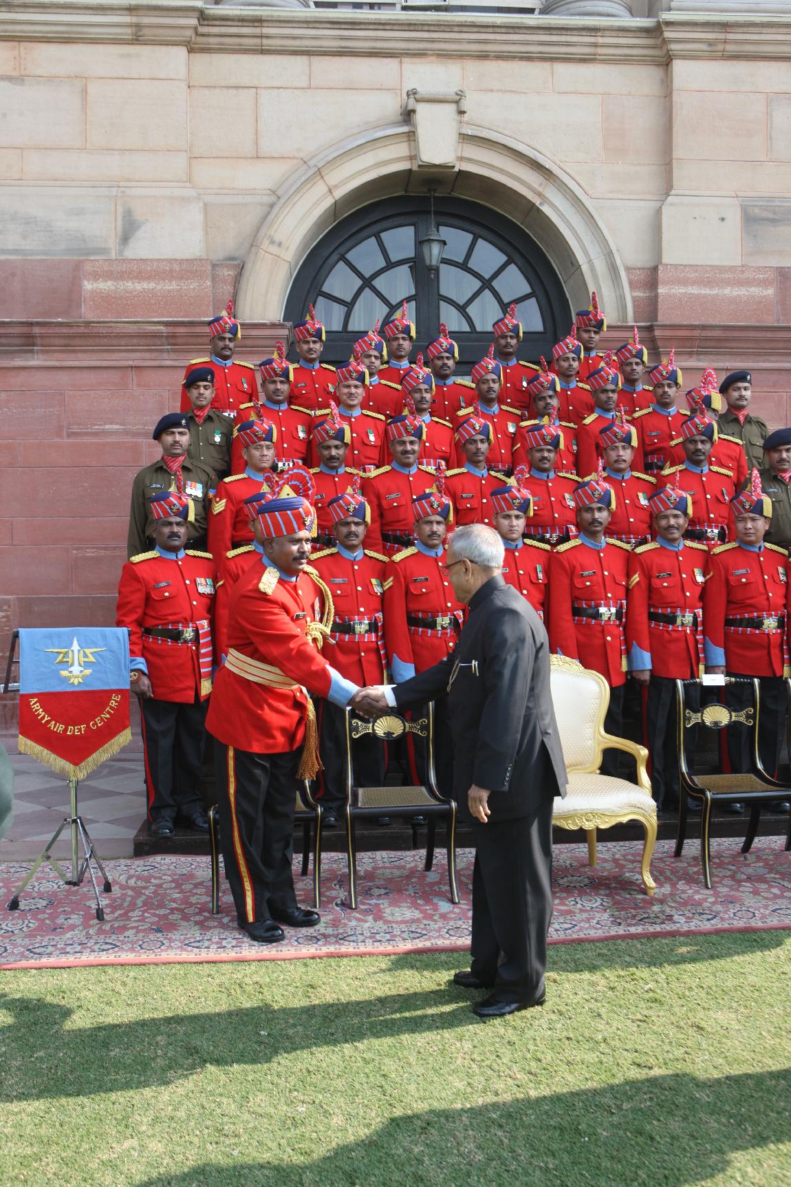 | Caption: | The President of India, Shri Pranab Mukherjee Posing for a Group Photograph with the Band Personal of AAD Centre Millitary Band on Dec 22, 2012 |