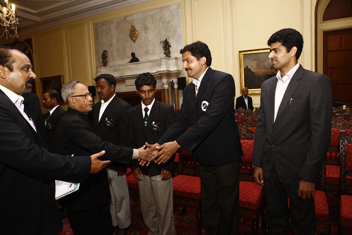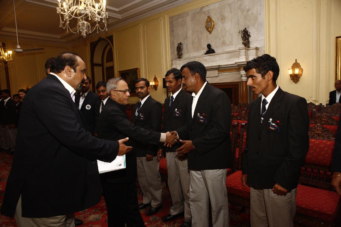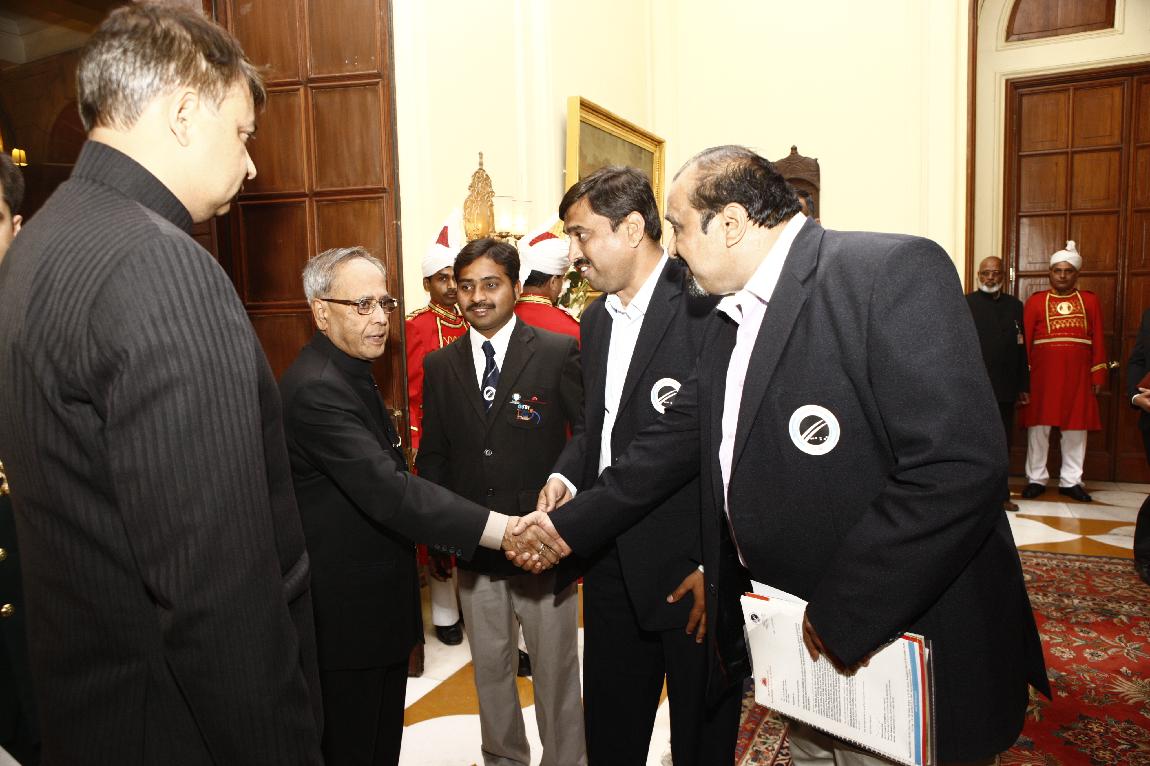 | Caption: | The President of India, Shri Pranab Mukherjee Meeting with Indian Blind Cricket Team Participated T-20 World Cup on Dec 24, 2012 |